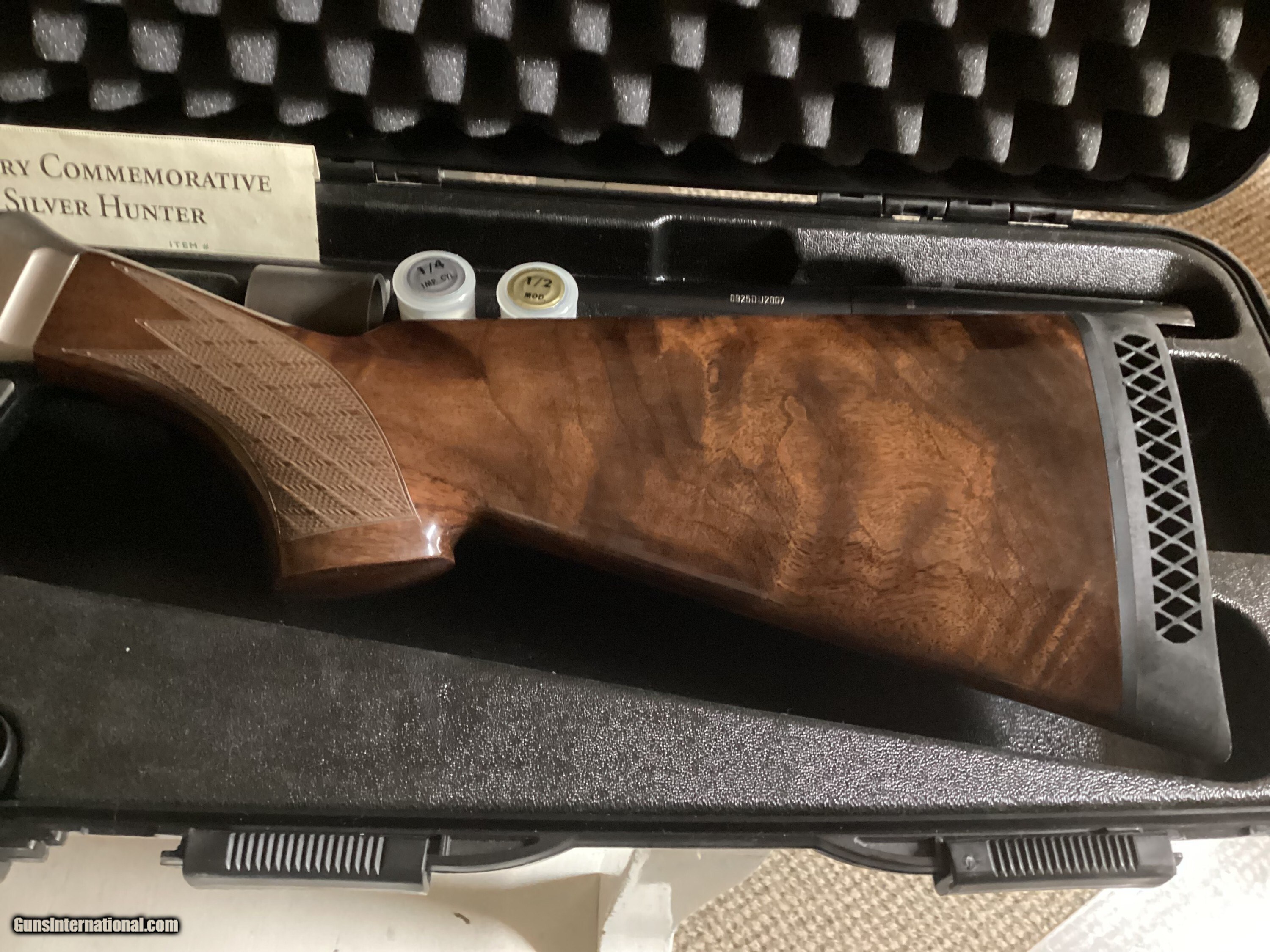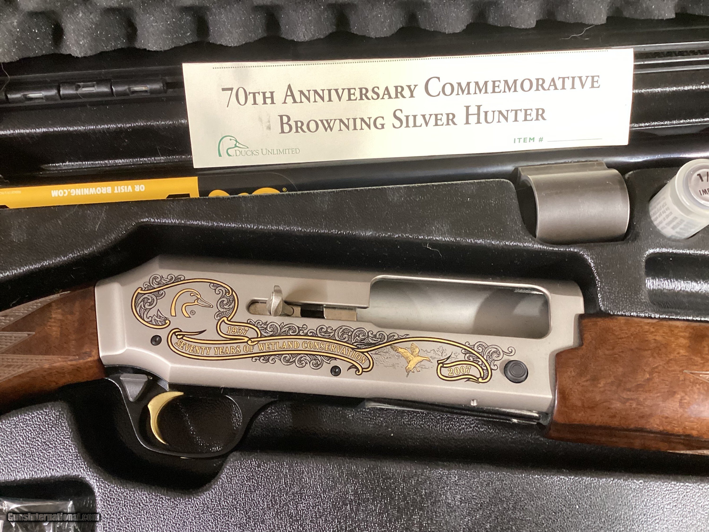 Description: NEW IN HARD CASE NEVER FIRED BROWNING SILVER HUNTER DUCKS UNLIMITED 70TH ANNIVERSARY COMMEMORATIVE SEMI -AUTO 28'' VENT RIBBED BARREL WITH THREE CHOKE TUBES. 3'' CHAMBER 12 GAUGE HIGH GRADE WALNUT STOCK AND FOREARM WITH GLOSS FINISH. SPECIAL DU SERIAL NUMBERING ORIGINAL BLACK BROWNING HARD CASE WITH DU LOGO MFG DATE 2007 ASKING $ 1500 + 60 DOLLARS SHIPPING AND HANDLING TO YOUR FFL DEALER. Shotgun Gauge: 12 Gauge Manufacturer: BROWNING Model: SILVER HUNTER Serial Number: 0925DU2007 Barrel Length: 28 Bore Info: 100% Chambers: . Condition: 100 Metal Condition: 100 Wood Condition: 100% Bore Condition: 100% Action: SEMI AUTO Stock: walnut Butt Pad: RUBBER Rib: 100% Finish: 100% Manufacture Date: 1976 Engraving: 100% Price: $1,500.00 Buy Now Contact Seller |