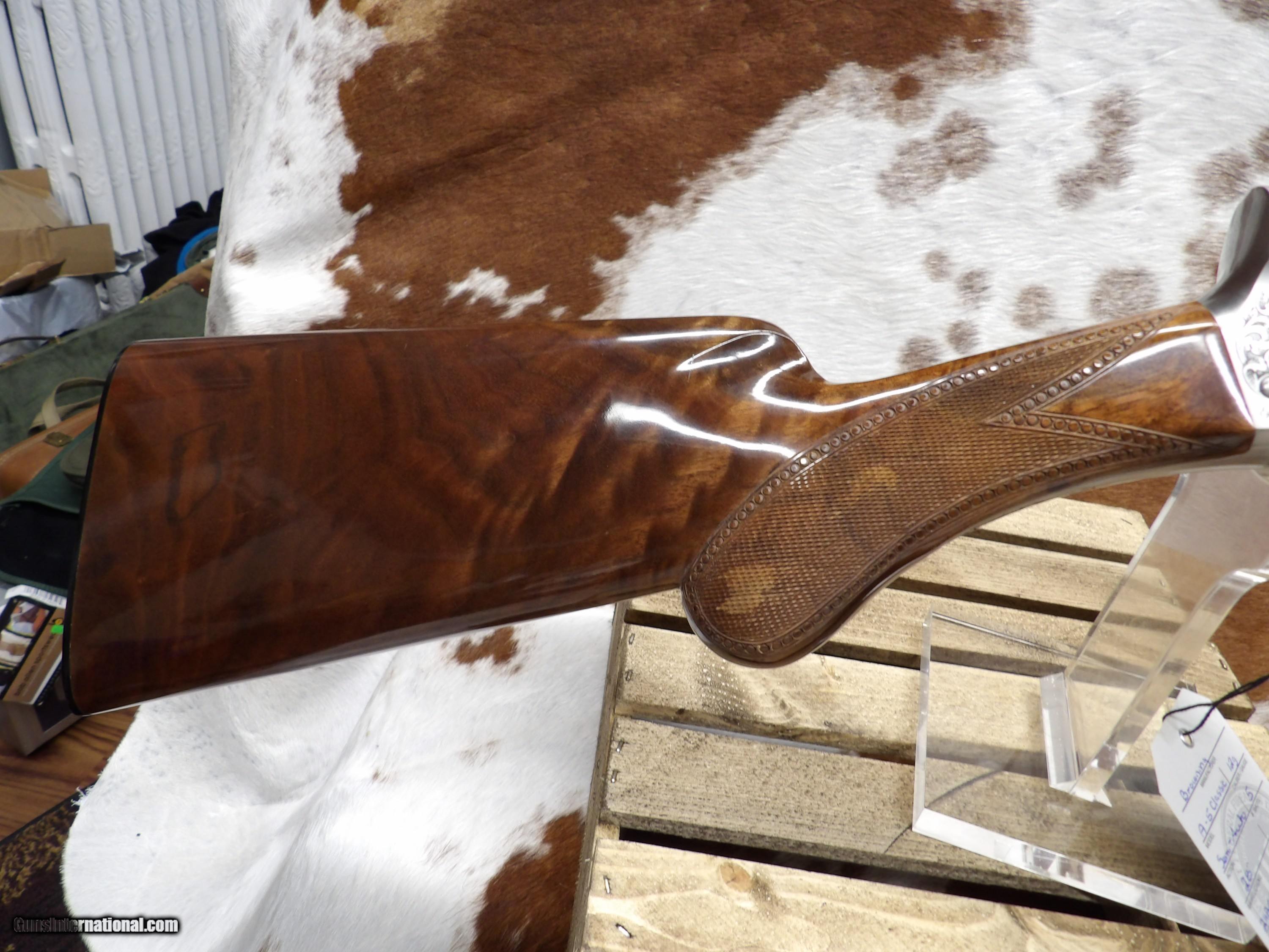 Description: Beautiful Browning A-5 Classic. 1 of 5,000 however only 2700 Were made. Built in Japan and then sent to Belgium where they were hand engraved and signed. G. Thirey signed this one. Look a the unique checkering and border decoration. This gun looks factory new but there is evidence that it was lightly shot. Dont miss out on this beautiful gun. The original box is included. SOLD Shotgun Gauge: 12 Gauge Manufacturer: Browning Model: A5 Classic Barrel Length: 28 Chambers: 2.75 Condition: AS NEW Metal Condition: Excellent Wood Condition: 98% Bore Condition: Excellent Barrels: 28 Stock Comb: 1 5/8 Stock Heel: 2.25 LOP: 14.25 Weight: 8lbs 5 oz Chokes: mod Case: Factory box |