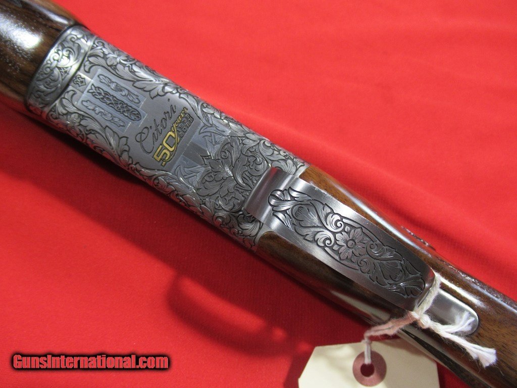Description: Browning Citori 50th Anniversary High Grade 12ga/32" Black Midas Chokes (NEW)-- Limited Edition Browning Citori 50th Anniversary: Silver Nitride receiver with full coverage scroll engraving and 50 Years logo in gold, high grade Turkish walnut stock and forend, right-hand palm swell, monograming plate in the stock, polished blue barrels, Triple Trigger System, HiViz front sight with ivory mid bead, Midas grade extended choke tubes. This gun is in stock for immediate delivery. SOLD |