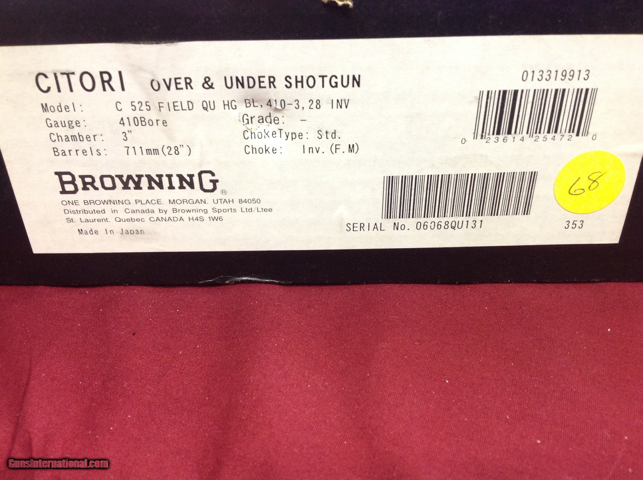 Description: Here's a Browning Citori 525. In .410 gauge.This Citori has never had a shell put in it. It's never been out of it's box except for these pictures. This gun is the 2006 Quail Unlimited gun of the year. The Heritage 5th edition. Just gorgeous with receiver engraving and gold inlay. Walnut wood in magnificent. It has been in a humidity controlled room since 2006. No need to over sell. I'm sure you know the Citori. Bottom line is, this is just one remarkable .410 and. It's knock down gorgeous. Thanks, Ed By the way , I have two of these serial no 68 / 100 And 41 / 100 One more thing, the QU's values are climbing fairly rapidly. Since the beginning we have sent a group of our peers to Washington , one purpose ! Keep up free !! This group has smashed as much of our freedom as any other invader possibly could. We allow it over and over.Barely half of us care enough to go vote especially if it's rainy. SOLD Shotgun Gauge: .410 Gauge Manufacturer: Browning Model: Citori Serial Number: 68 of 100 Barrel Length: 28 Condition: Brand New Barrel Type: O/U Triggers: One Rib: Vent Engraving: Gold inlay |