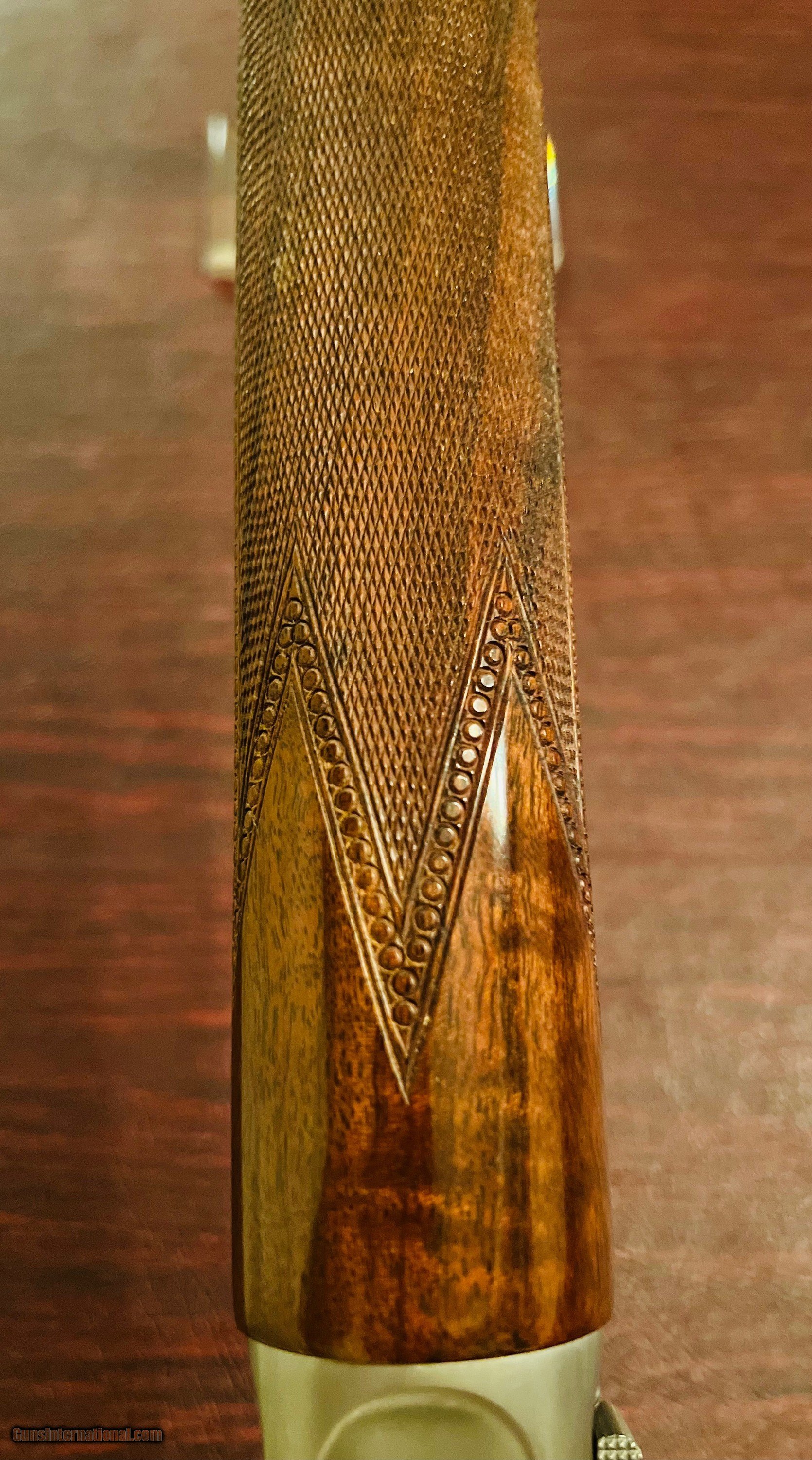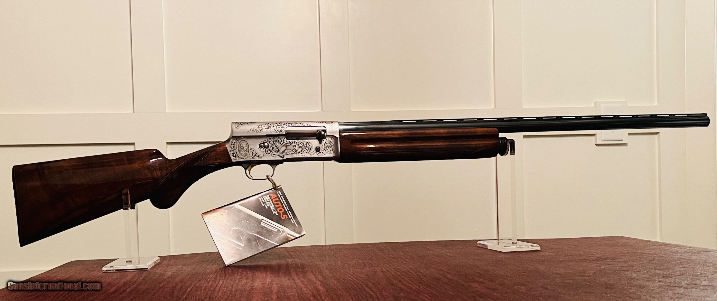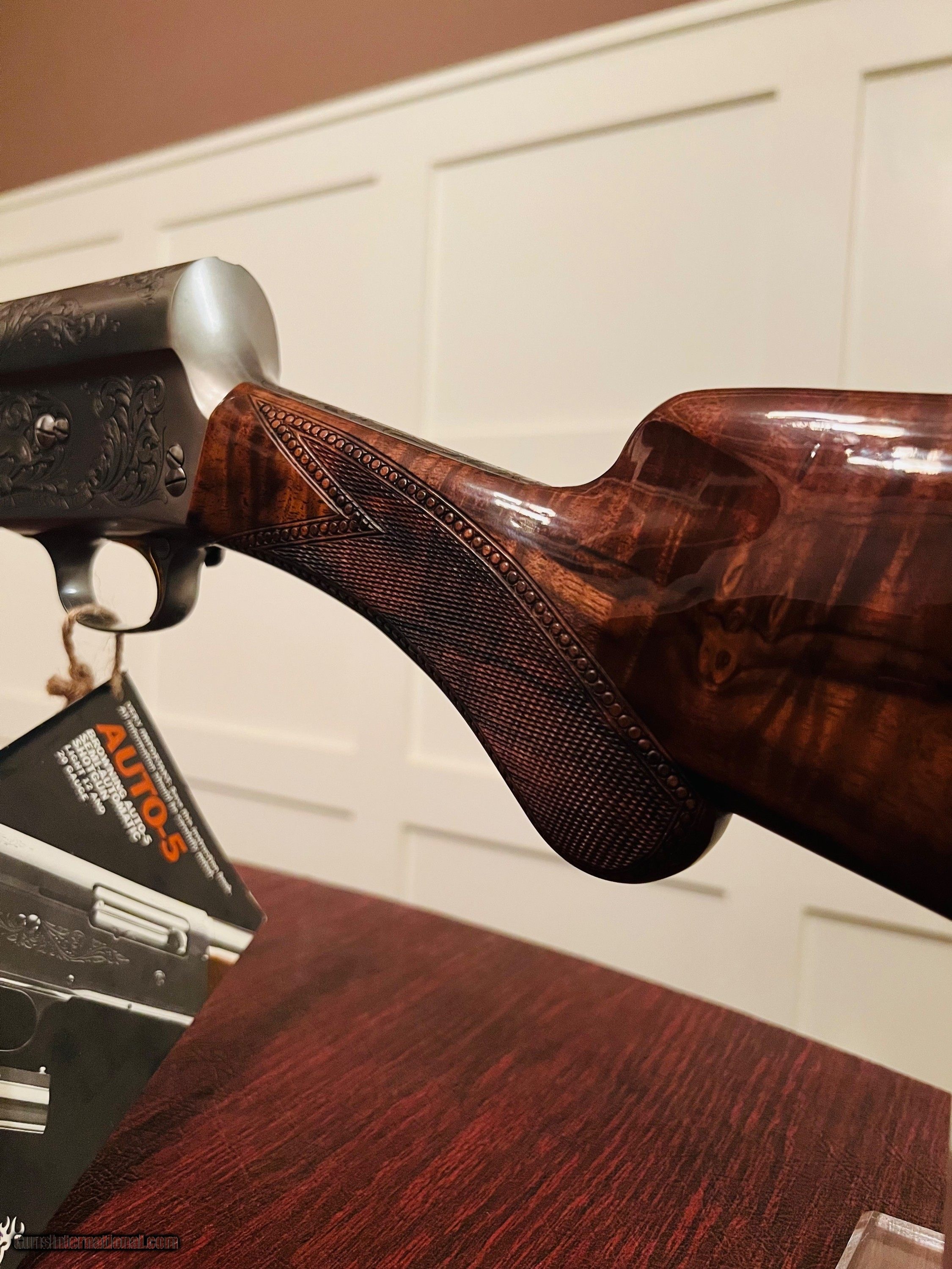 Description: Browning A5 LIGHT 12 ga 2 3/4 chamber with a 28 inch barrel. This is a John Browning Commemorative that was manufactured in Japan and shipped to Belgium to have exhibition grade wood installed and hand engraving. Gun has a modified choke with a vent rib. This shotgun has been hand engraved by C. Perrido-the signature can be located in very small print near the stock. It presents a hand engraved water fowl scene with a picture of John Browning and beautiful scrollwork on one side and the hunting dog on the other. Upon our detailers inspection this gun has little to NO use and is in MINT condition. You will not find another gun like this!! Ships with original box and paperwork in a Hard Plano case ALL OFFERS WILL BE CONSIDERED!!! THANK YOU FOR LOOKING!!! The fine staff at Arts Gunshop in Hillsboro, Missouri has done the absolute best work for us. Cowboy talks with their staff on a regular basis. We are not affiliated under no circumstances with Arts Gunshop in any way. However, with that being that being said, if you are purchasing from any other dealer and have any questions about a guns authenticity, it would be worth it to you to have the dealer ship it to them to have them do a full inspection of that firearm so that you will know exactly what your buying. The staff at Arts Gunshop are by far the best at what they do. They do everything from full restoration to selling guns. We look to Arts Gunshop as the best in the U.S. in regard to the services they provide and the work they have done for our shop. Again, we are not in any way affiliated with Arts Gunshop. We only want to share with others their fine work they have provided for us. We believe in giving credit where credit is due. Jacks pawn and guns is a full service dealer carrying every modern brand firearm such as Colt, Sig Saur, FN, Glock Kimber, Beretta shotguns, Henry rifles and Ruger American Rifles just to name a few. We want to thank the fine staff at Jacks pawn and gun for working with us over the years and being so helpful. You will never meet nicer or more helpful business owners like Brad and Beverly Dixon. They run the nicest mom and pop gun shop in Dalton, Ga. If you are in the market and happen to be around Dalton, Ga and happen to be looking for a nice gun or even lessons on gun safety or how to properly use a gun they offer classes in their very own shooting range they have on site. It would be worth your while to stop in and take a look around. You will not be disappointed. We are in no way affiliated with Jacks Pawn and Guns. Add 75.00 for shipping. SOLD Shotgun Gauge: 12 Gauge Manufacturer: Browning Model: Auto 5 Chambers: 2 3/4 Condition: MINT Metal Condition: Excellent Wood Condition: Excellent Rib: Ventilated |