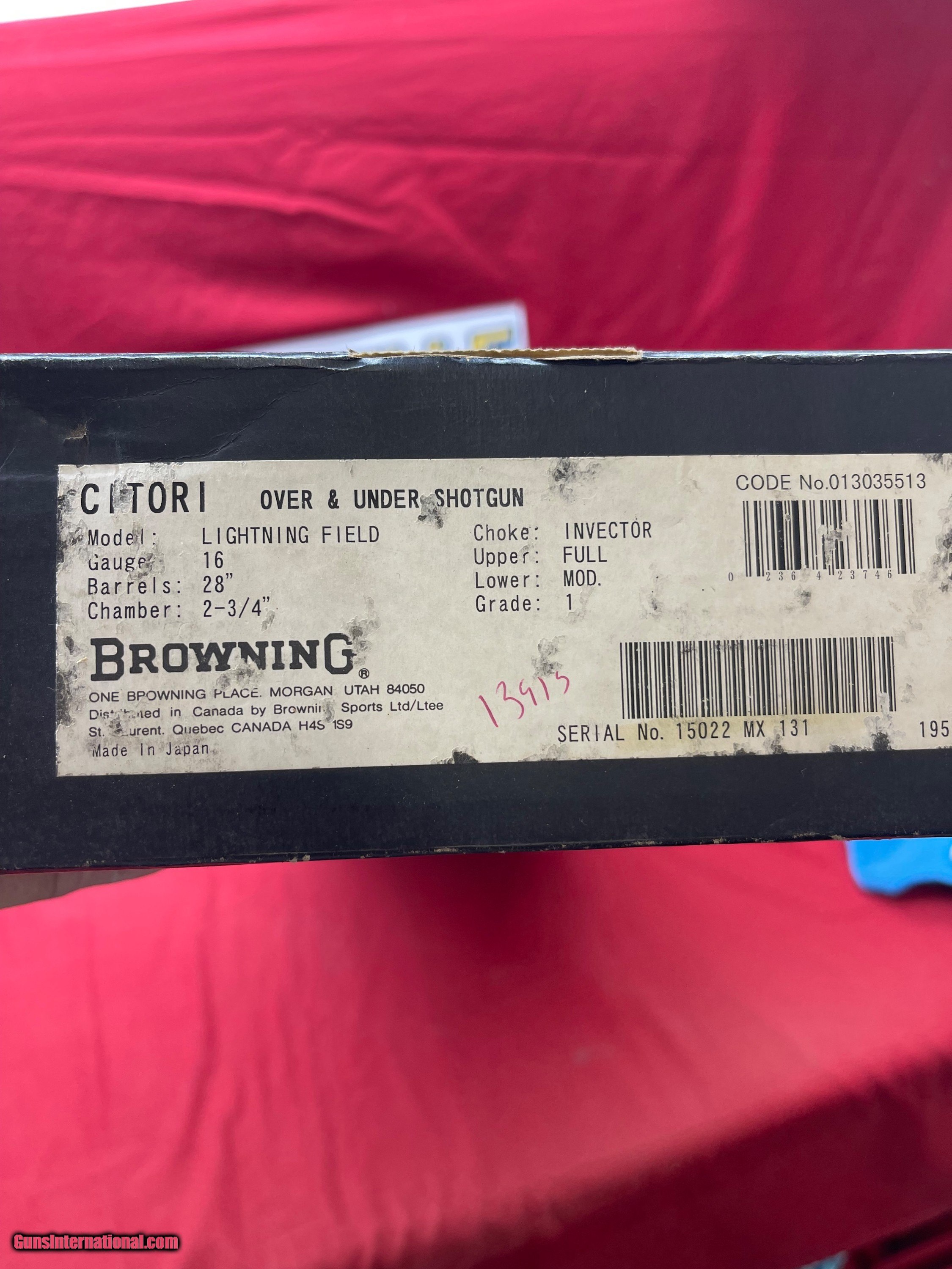 Description: Another great item from Gainesville Pawn! Up for sale is a Browning Citori Lighting. This gun is in the scarcely encountered 16 gauge. The. Over and Under is in excellent condition with just a few handling marks. It comes with its factory tools, 3 browning chokes and 3 Briley extended chokes Please see photos. *Please be aware that all items are sold “AS IS”. Ask questions BEFORE buying. Feel free to call us at our store (352) 240-6452 or (352) 339- 4780 or email us at Gainesvillepawn(at)gmail(dot)com with ANY questions. We do not accept trades or offers through through Guns International We only entertain trades and offers through our store. $75 shipping and handling. Insurance extra. We only accept USPS money orders and major credit cards for payment. 3% convenience fee for credit cards. WE collect Florida state sales tax for in state sales. Please be aware that this item is for sale in our store as well as the occasional gun show so it may be sold there at any time. We will not ship the item until you have your dealer/receiving store email us a signed copy of their FFL to gainesvillepawn(at)gmail(dot)com Shotgun Gauge: 16 Gauge Manufacturer: Browning Model: Citori Lighting Serial Number: 15022 MX 131 Barrel Length: 28 inch Condition: Excellent Metal Condition: Excellent Wood Condition: Excellent Bore Condition: Excellent Price: $1,899.00 Shipping: $75.00 Buy Now Contact Seller |