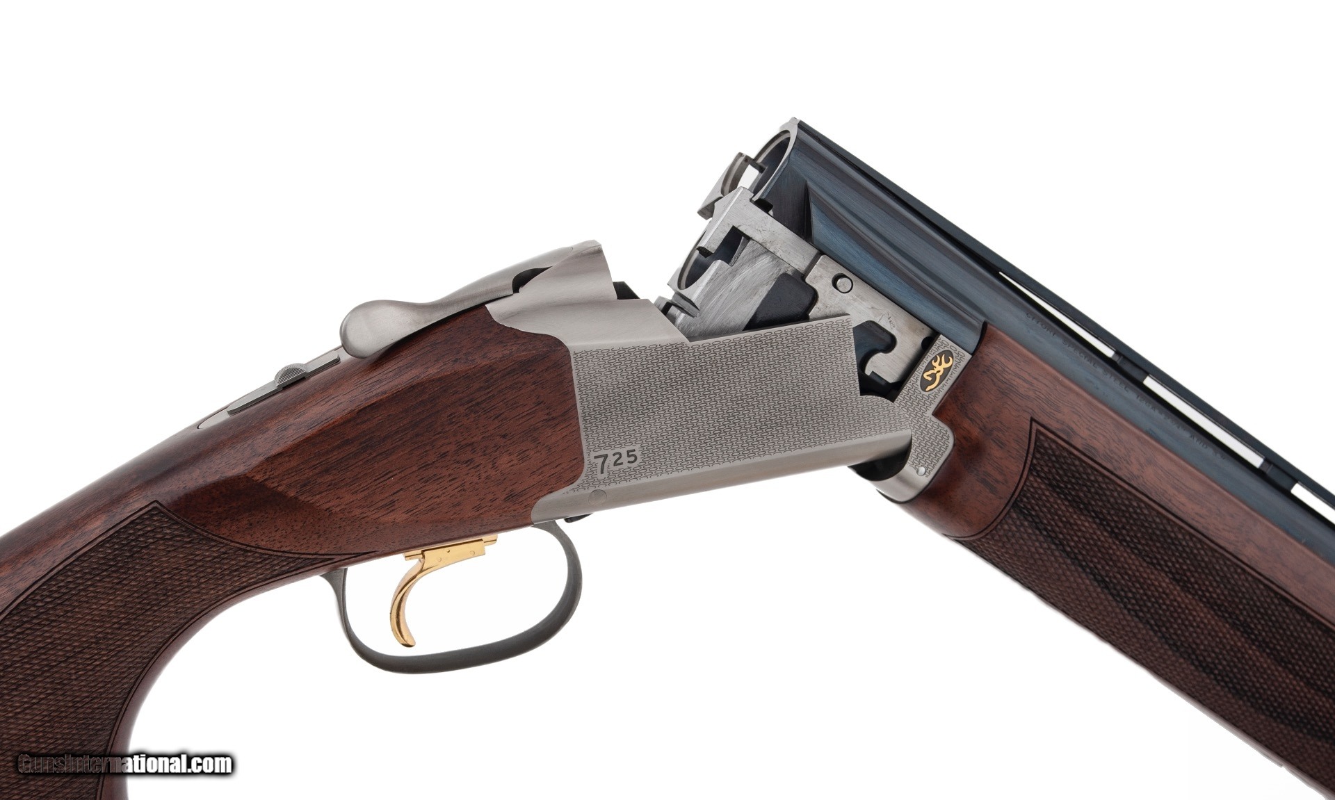 Description: SOLD Manufacturer: Browning Model: 725 Sporting Caliber Info: 12 Gauge Ejectors: Yes Condition: New Metal Condition: New Barrels: 32 Action: Boxlock Triggers: Single Gauge Info: 12 Gauge Stock Comb: 1 3/4 Stock Heel: 2 5/8 Stock Cast: Off Fore End: Checkered LOP: 14 3/4 Rib: Ventilated Weight: 8.500000 Chokes: 5 Factory Chokes Case: Factory Box |