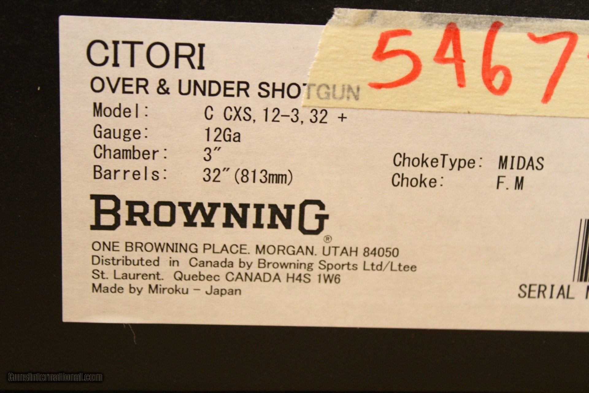 NEW Browning Citori CXS (12 Gauge 32" Over/Under Shotgun, Gloss) 018073302
