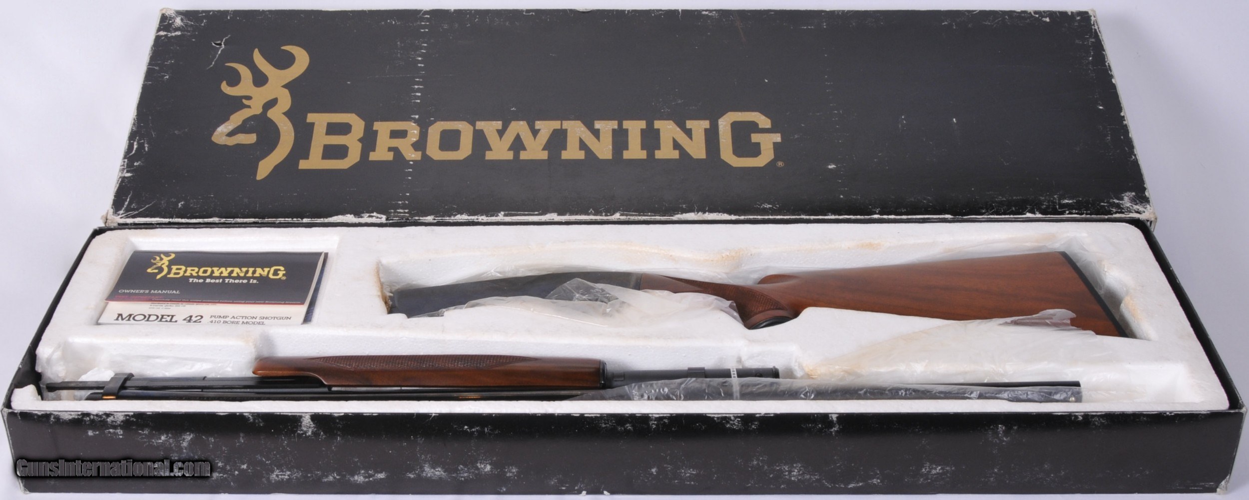 Description: Browning Model-42 in 410Ga. 26" barrel. Full VR. 2 1/2" and 3" shells. Skeet style. Checkered stock and forend. SOLD Manufacturer: Browning Model: Model 42 Metal Condition: Great Wood Condition: Great Gauge Info: 410Ga Stock: Wood Item Location: 35209 |