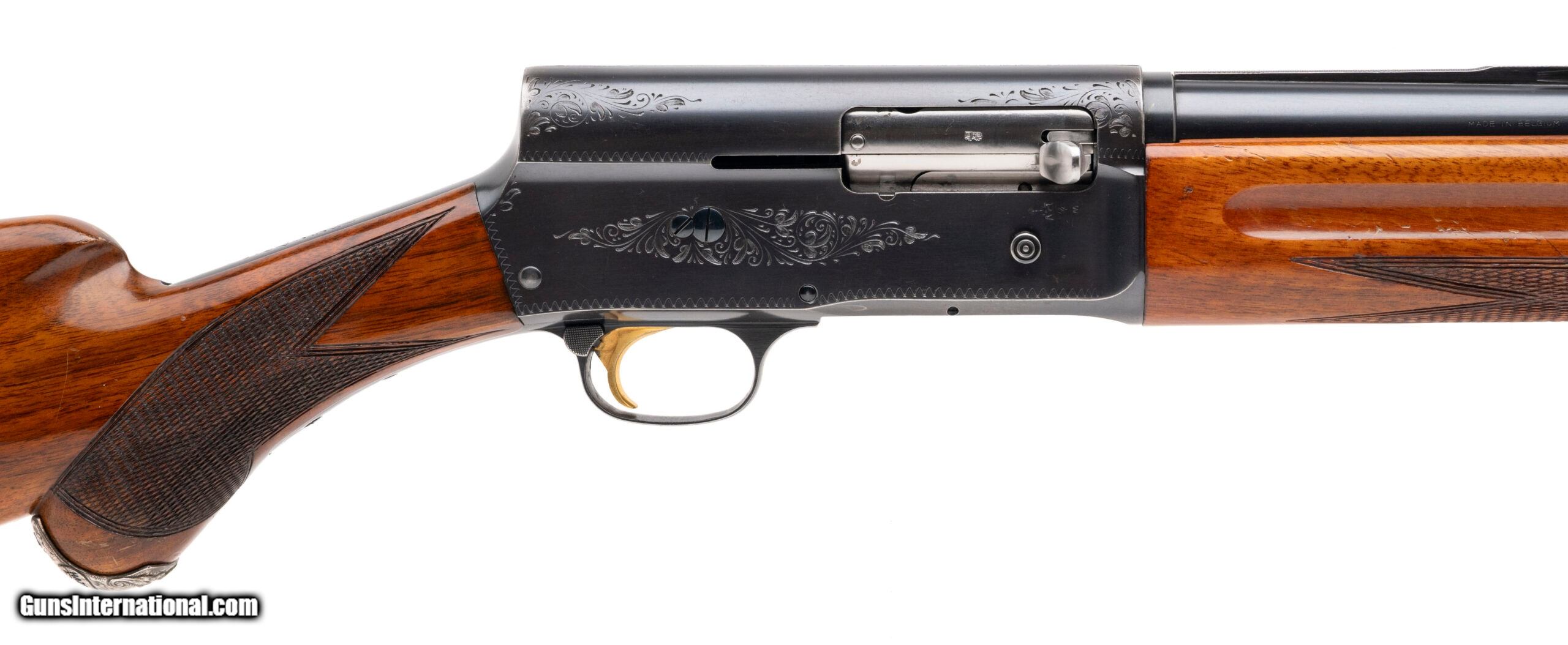 Description: "SN: 2S83293 made in Belgium circa 1950’s. semi-auto 16 gauge shotgun with a factory vent rib barrel that was shortened to 23 ½" when the extended Lyman choke was installed, OAL including the choke is 27 ½". Blued metal with a gold plated trigger and checkered walnut furniture with a custom engraved silver grip cap and 13 ¾" LOP to the Pachmayr recoil pad. Other than one dent on the left side of the grip there are only some small handling marks and light wear, overall in very good condition with an excellent bore. Price: $1,495.00 Contact Seller |