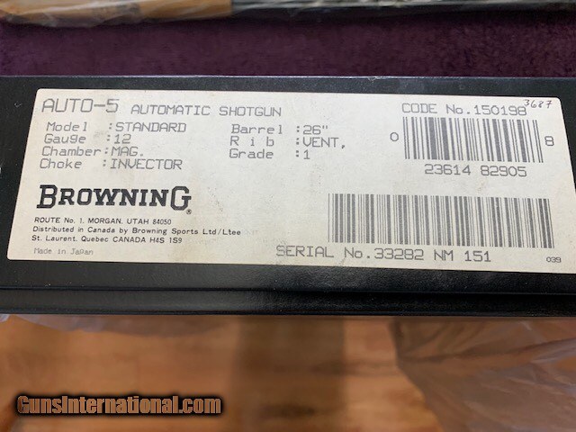 BROWNING A-5, 12 GA. MAGNUM, 26” INVECTOR, 3” CHAMBER, NEW IN THE BOX WITH OWNERS MANUAL & CHOKE TUBES