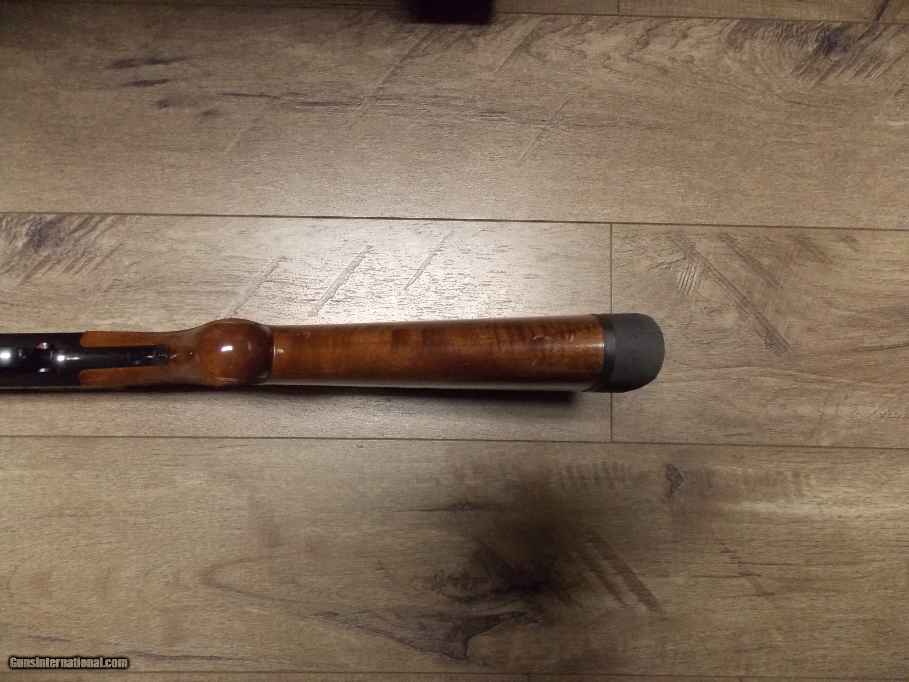 Description: Late model production , one of the last Browning A-5 3" mag (1997) Japanese manufactured. 28" invector plus barrel with vent rib. Factory pad has been replaced with a kickeze soft sporting clays pad. Lop of 14 3/8". Metal and blue is in excellent condition, Nicely figgured wood shows some light scratching in forearm and buttstock. Excellent bore. Friction rings are set up for steel shot and field loads. SOLD Shotgun Gauge: 12 Gauge Manufacturer: Browning Model: A-5 Barrel Length: 28 Bore: good Chambers: 3 Condition: good Metal Condition: very good Wood Condition: good Bore Condition: good |