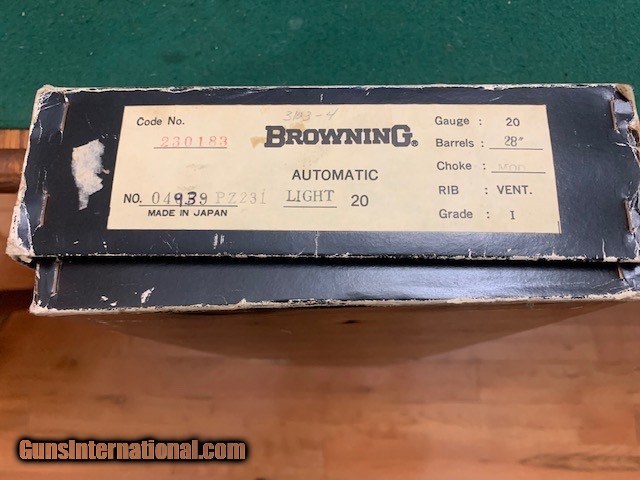 BROWNING A-5, LIGHT-20 GA., 28” MOD CHOKE, MFG. 1981, HAS A SCRATCH ON LEFT SIDE OF THE STOCK, IN THE ORIGINAL BOX