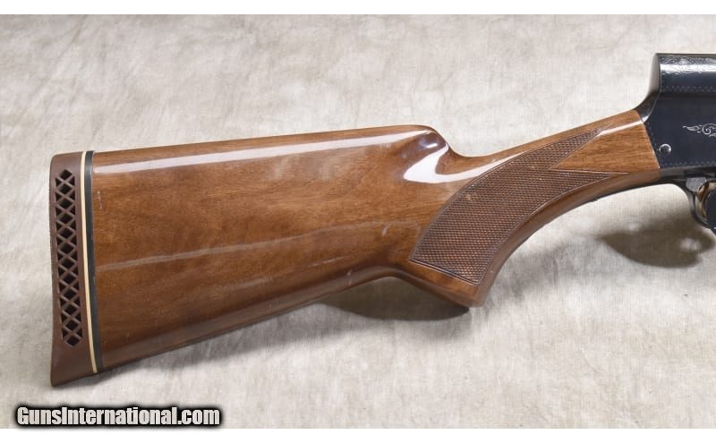 Description: Very nice Auto-5 manufactured in 1982 and features crisp engraving, sharp checkering, low rib, and very nice wood.The wood is in good conditioning a few dings. 12 Gauge SOLD Chambers: "4+1 capacity (unplugged), 12 gauge, 3-inch Metal Condition: Excellent. Wood Condition: Very good to excellent. Bore Condition: Shiny and bright. Barrels: 32 - inch Triggers: Factory trigger. Stock Dimensions: 14-1/4 inch LOP. Fore End: Checkered walnut semi-beavertail. Butt Pad: Ventilate rubber Browning pad. Weight: 9 lb - 1 oz Sights: Low ventilated rib with gold fore bead. Chokes: Fixed Full choke. Item Location: Rogers |