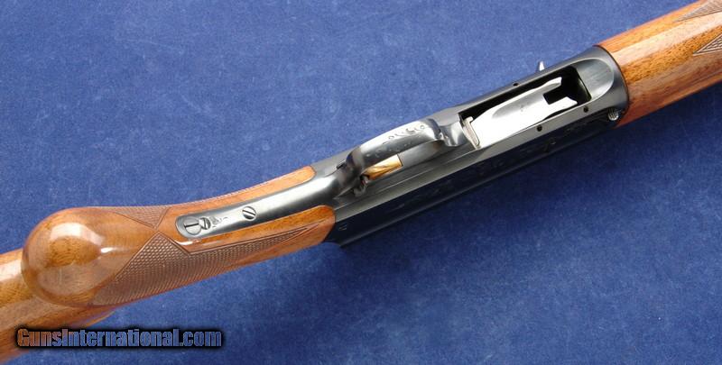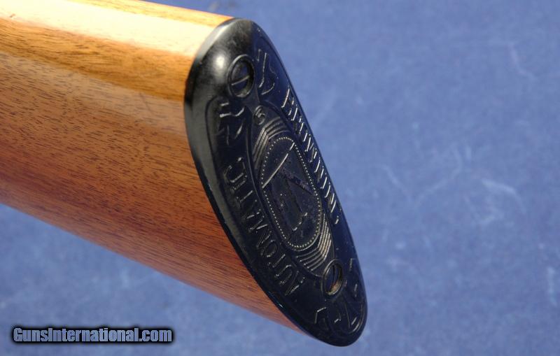 Description: Browning A-5 Twenty chambered in 20ga 2-3/4” and was manufactured in Belgium 1965. This A-5 features a 25-1/2” barrel, vent rib, gold trigger, engraved frame, fixed MOD choke, FN Browning factory butt plate, Round Knob pistol grip, and checkered walnut stock. This standard weight Twenty is in excellent with only a couple light handling marks on the stock. SOLD |