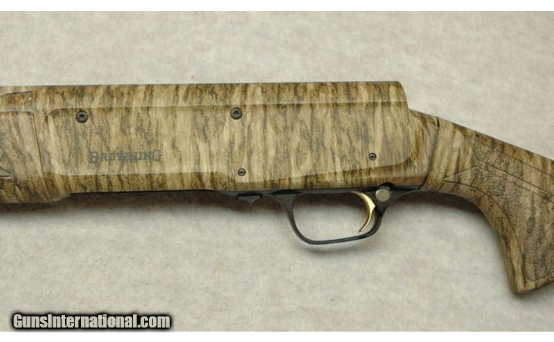 Description: Semi auto Browning 12 gauge, synthetic stock, Mossy Oak camo finish. Great choice for ducks, geese or turkey hunting. 12 Gauge SOLD Chambers: 3 1/2 Metal Condition: Excellent Wood Condition: Excellent Bore Condition: Bright Barrels: 28 Triggers: Factory trigger Stock Dimensions: 14" LOP Fore End: Textured Butt Pad: Factory pad Sights: Red fiber optic front, small white mid beads Chokes: Invector chokes Item Location: La Vista, NE |