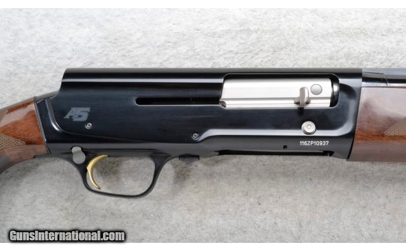 Description: This Browning Model A5 is a right hand semi-auto shotgun in 12 Ga. It has a 28 inch barrel. A red high visibility front sight and a white middle bead sight. With a 3 inch chamber it has invector DS choke and comes with 3 choke tubes. The butt stock is a checkered grip hardwood pistol grip. The forearm is a checkered grip hardwood with finger grooves. Made in Portugal. 12 Gauge SOLD Chambers: 3 inch. Metal Condition: Excellent. Wood Condition: Excellent. Bore Condition: Bright and shiny. Barrels: 28 inch barrel with a ventilated rib. Stock Dimensions: LOP 14 1/4 inches. Fore End: Checkered grip hardwood with finger grooves. Butt Pad: Inflex Technologies black rubber recoil pad. Weight: 6 lb. 12 oz. Sights: Red high visibility front. White middle bead. Chokes: Invector DS choke. Comes with 3 choke tubes. Item Location: Richfield, WI |
