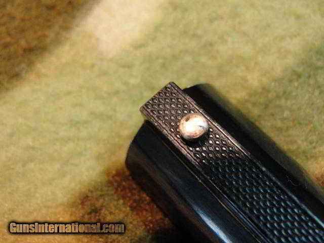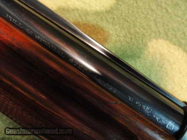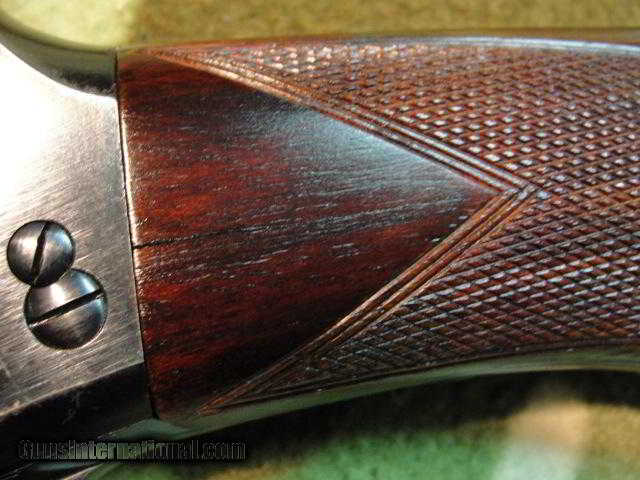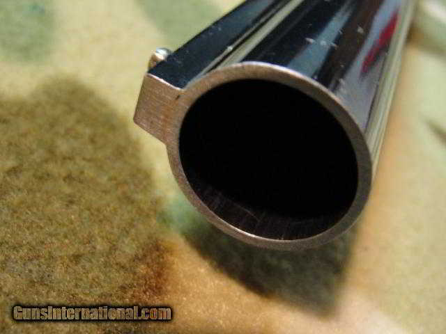 Description: All matching number gun: barrel, stock, fore end, internals, even the elevator screws. Mechanically sound inside and out, and ready to hunt! Within the last year this has been professionally cleaned, serviced, lubed. Previous owner had the fore end and stock repaired and refinished. There was a hairline crack at the head, LH side, and the dreaded fore-end crack. These were professionally acra-glassed (look it up...good stuff!) and have withstood repeated firing with no signs of letting go. Has beautiful hand-rubbed oil finish and all the checkering has been recut. There are two "check" cracks in the left of the stock, which do not affect the strength. Pull is 14-1/8" over a fresh Pachmayr Old English pad. Solid rib barrel has a pretty good bore: .728" with lots of shiny, but also many patches of shallow roughness from front to back. Has some choke, maxing at 0.025 restriction, for about the last inch of the bore. Barrel is 28", and we suspect it has been shortened from 30" at some point. Overall, a very handsome and usable shotgun. Previous owner spent a bundle getting it to this condition, and now its your turn to get it for a fraction of that. CA sales OK, C&R OK. SOLD Curio/Relic: Yes |