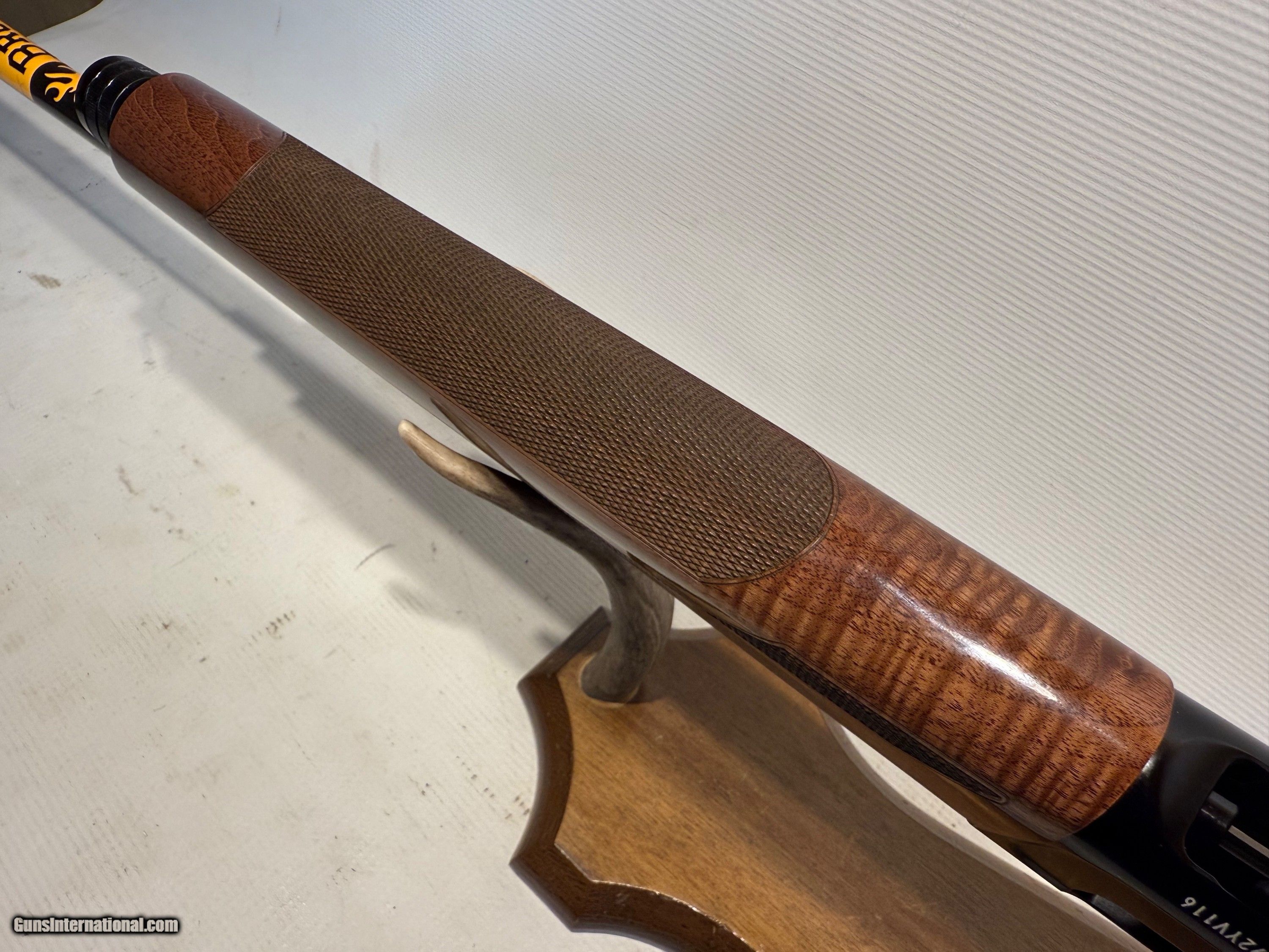 Description: Here we have a Browning A5 Hunter chambered in 20 Ga. This gun features a 28 in. Vent Rib barrel, 3" chamber, 4+1 shot, blue metal, three chokes tubes (Mod, Imp, Full), high gloss pistol grip walnut stock and forearm with checkering, a 14 1/4 in. LOP, and comes with a hard case and box. This gun is in Perfect condition! The stock is in perfect condition and is in 99% + condition. The barrel and reciever are in Perfect condition and are rated at 99% + condition. The bore looks clean and is in 99% + condition! Overall, this gun is in 99% + conditon. Please call us with questions before purchasing. Shotgun Gauge: 20 Gauge Manufacturer: Browning Model: A5 Hunter Serial Number: PT03892YV116 Barrel Length: 28” Chambers: 3” Chamber Condition: 99% + Metal Condition: 99% + Wood Condition: 99% + Bore Condition: 99% + Barrel Type: Smooth LOP: 14 1/4” Finish: Blued Chokes: Full, Improved Cylinder, Modified Case: Hard Case Included Price: $1,999.00 Buy Now Contact Seller |