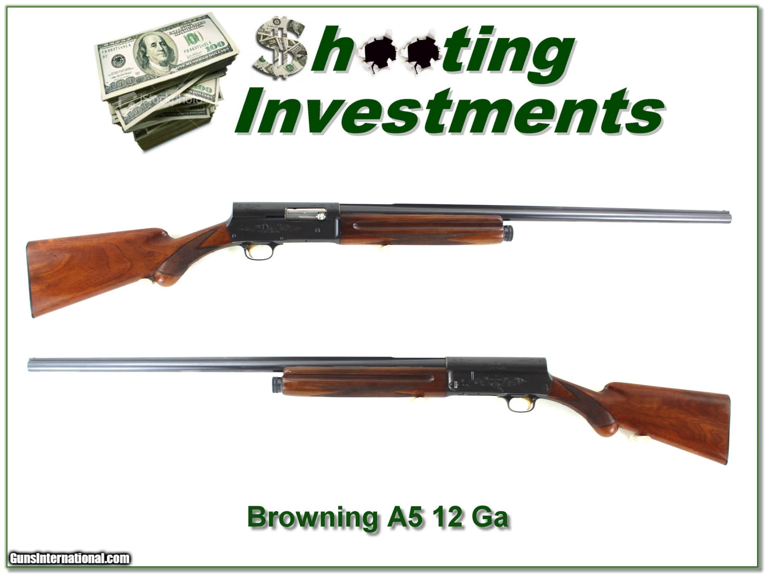 Description: This is an all original 1960 Belgium made Browning A5 Light 12. It has beautiful wood grain and hard to find 30in solid rib full barrel. It has little use with just light recoil wear and hardly any edge wear on the receiver. The wood has a few marks I expect as much from storage as use. It will make a classic Browning for the field! It is a Shooting Investment. Shipping and insurance is $39. Please email me with any questions or larger pictures. (Consign your quality firearms with Shooting Investments for only 12%! Let me know if you have any you would like to sell!) 14-0018 Payment: Payment is by Money Order, Cashiers Check or Personal Check. I can now also accept Credit Cards (MasterCard, Visa, Discover & American Express) with a 3% convenience fee. Shipping: The shipping charge will be listed in each description. It is $39 for most firearms. Some heavy guns or those insured for over $2000 will be higher. Shipments to Alaska and Hawaii are higher because air shipment is required. Most firearms are shipped on Tuesday and Thursday and usually in 5 days of receipt of payment. We package all shipments carefully and insure them. Optics are shipped Priority Mail and most other non-firearm shipments are shipped First Class. Returns: Our return policy is simple. If for any reason you are not pleased with your purchase, you may return your item for a full refund of purchase price. Ammunition cannot be returned. It is important to us that you are happy. Guns cannot be fired or dissembled before returning them and they must be returned in the same condition as received. Notification of a return must occur with-in 3 days of receipt at your dealer. Shipping, convenience and dealer fees are not refundable and are the responsibility of the buyer. Lay-a-way: If needed, we offer a 60 day lay-a-way option on most firearms. It is 1/3 now, 1/3 in 30 days and 1/3 in 60 days. Lay-a-way firearm sales are final and if not completed the first payment cannot be returned. Consigning your firearms with Shooting Investments: We will help you get top dollar for your firearms. While most local guns shops charge 20% or more, our fee is only 12% with a minimum of $75. At your local gun shop it might take months to sell. Selling on-line provides instant access to thousands of interested buyers. You won’t find any other on-line dealer willing to sell your firearms for only 12% or listing every gun on 3 separate s. Selling through an House typically costs the seller 15% and the buyer an addition 15% (so 30%) and you have to wait several months to sell and longer to receive funds. If properly priced, we will sell your firearms in a few weeks. Send us an email or give us a call and we’ll explain how easy it is for you to get top dollar. Trading: Trading for use is really just buying your gun to re-sell. If you have a gun you want to trade, please email a picture and we will let you know what we can give or it. You will always get more if we sell it for you on consignment. Help for California Buyers: We are happy to ship to California. It is the buyer’s responsibility to make sure any item you buy is legal in your state. We are also happy to help with your purchase of a firearm from someone other than us. If you see a gun you would like to buy but the seller can’t or won’t ship to California they can ship to use and we’ll then ship it to your California dealer. The cost for this service is only $30 + shipping. Let us know if we can help! SOLD |