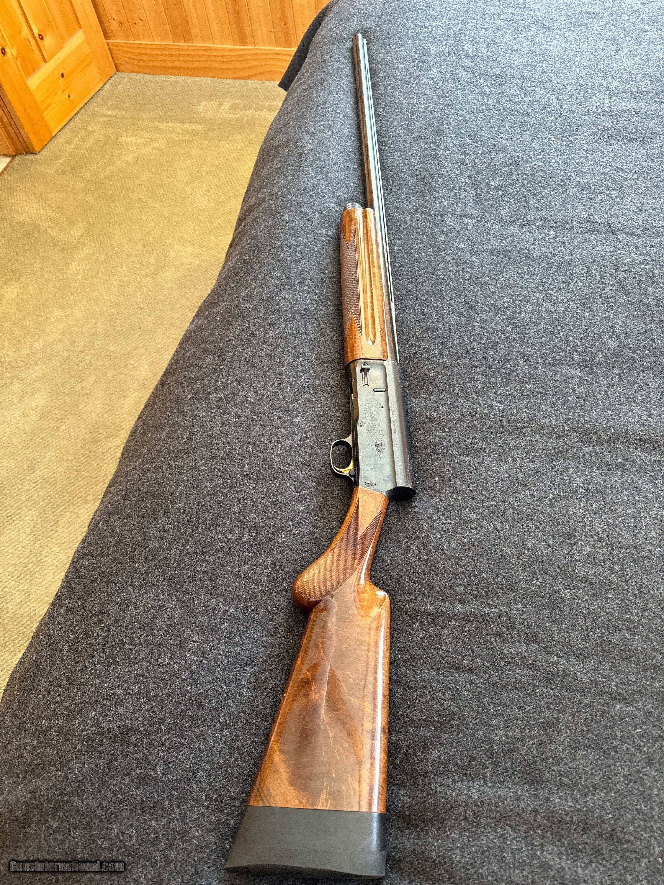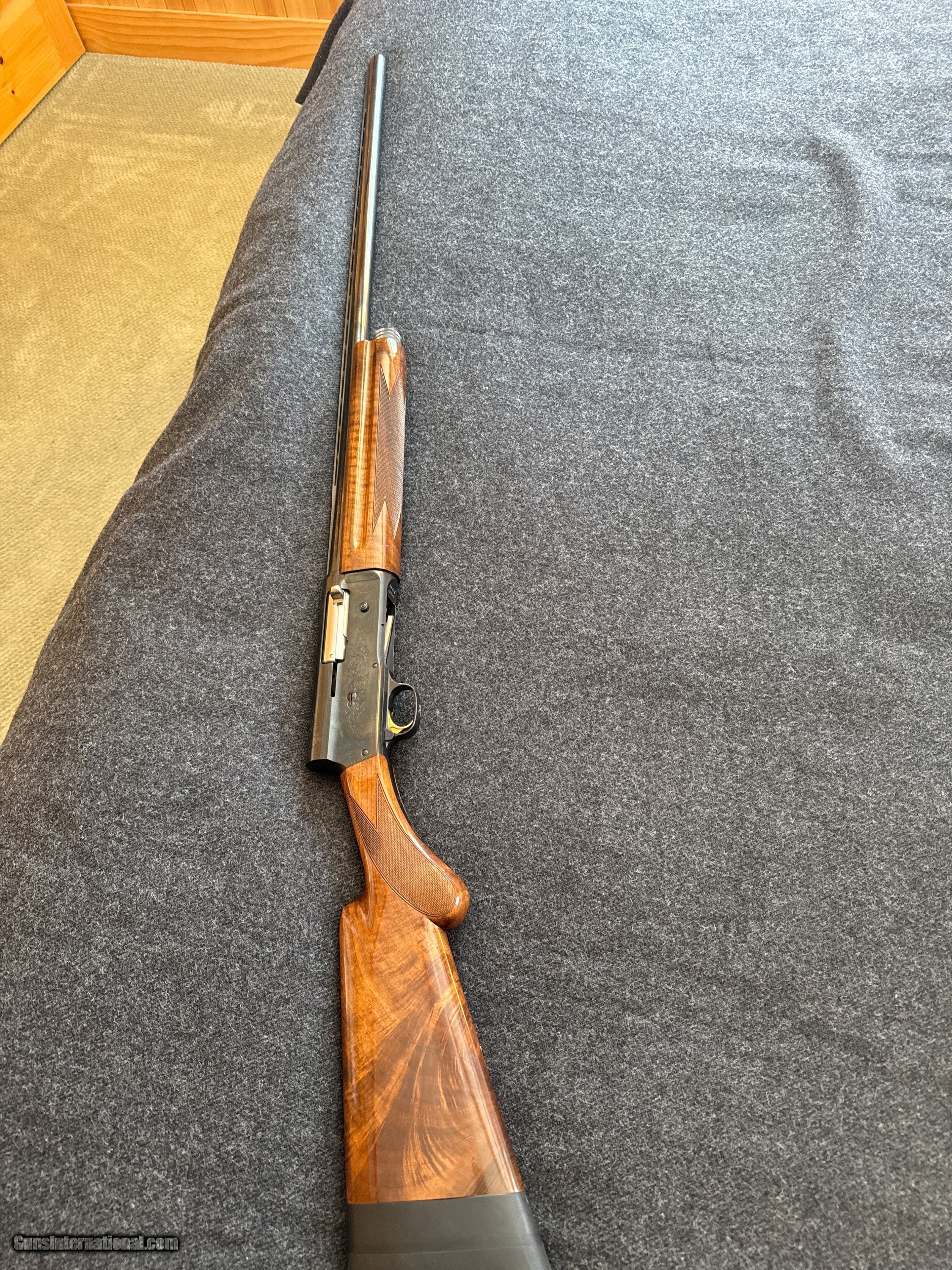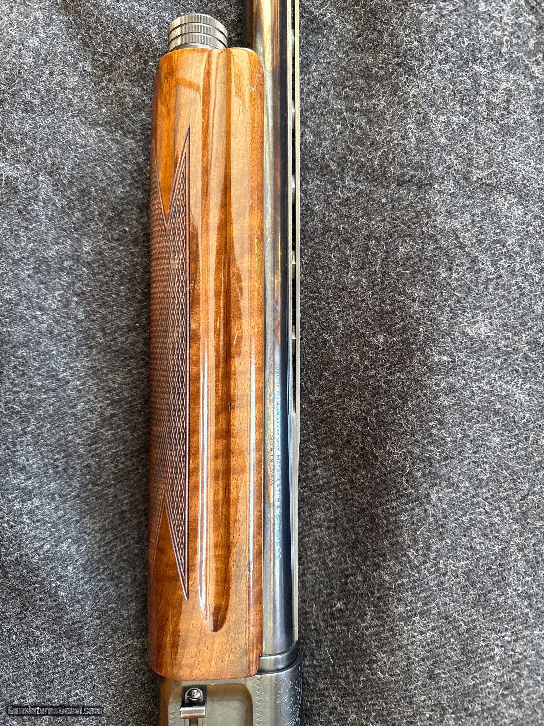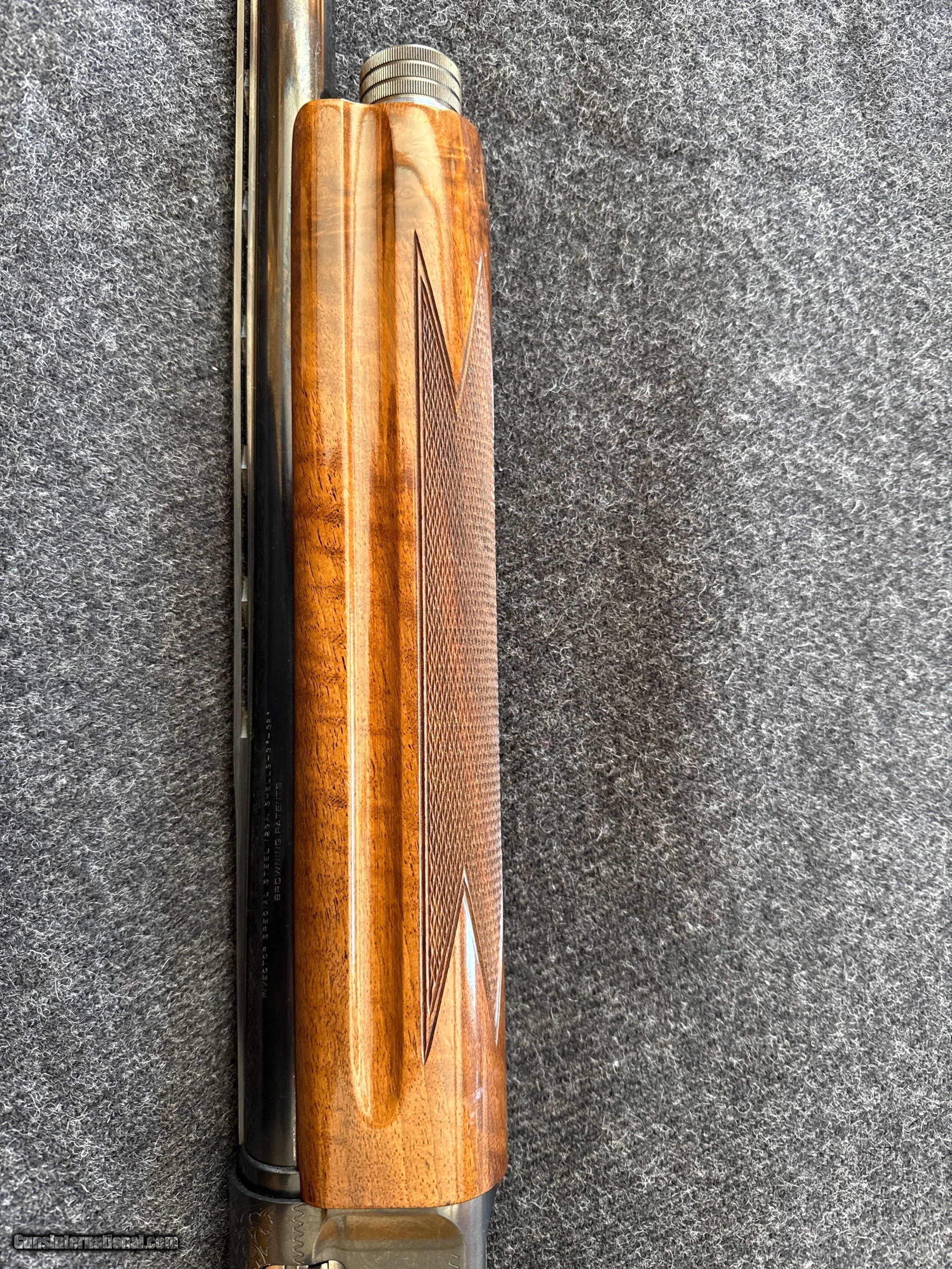 Description: For your consideration. Magnificent and Rare Browning A5 Magnum 12 guage built in 1988. Highly Uncommon, Highest Grade Churl Fiddleback Turkish Walunut as used on Grade VI Citori during the same period. . Made in Japan, Miroku Plant. Has been fired, however, very very little and shows zero wear. Original Box disintegrated a decade ago. Comes with a period relevant original Browning Travel Vault. 32" ventilated rib barrel. 4 screw-in chokes with tool/wrench. Stock has been extended by renoun Ahlman's Gun Shop in Morristown, MN. Being sold out of an estate. Reasonable and serious offers will be considered for this piece. Shotgun Gauge: 12 Gauge Manufacturer: Browning Model: A5 Serial Number: FN 151 49727 Barrel Length: 32” (31.75) Ejectors: Semi Auto and Manual Condition: Like New Metal Condition: Excellent Wood Condition: Excellent Bore Condition: Like New Action: Semi Auto Rib: Yes. Ventilated. Finish: Gloss Sights: Open Manufacture Date: 1988 Chokes: 4, Full, Modified, Improved IC, IC, Engraving: Yes Extras: Highly Uncommon Original Churl Fiddleback Iridescent Turkish Walnut Case: Original Browning Travel Vault Item Location: Minnesota Price: $3,500.00 Shipping: $100.00 Buy Now Contact Seller |