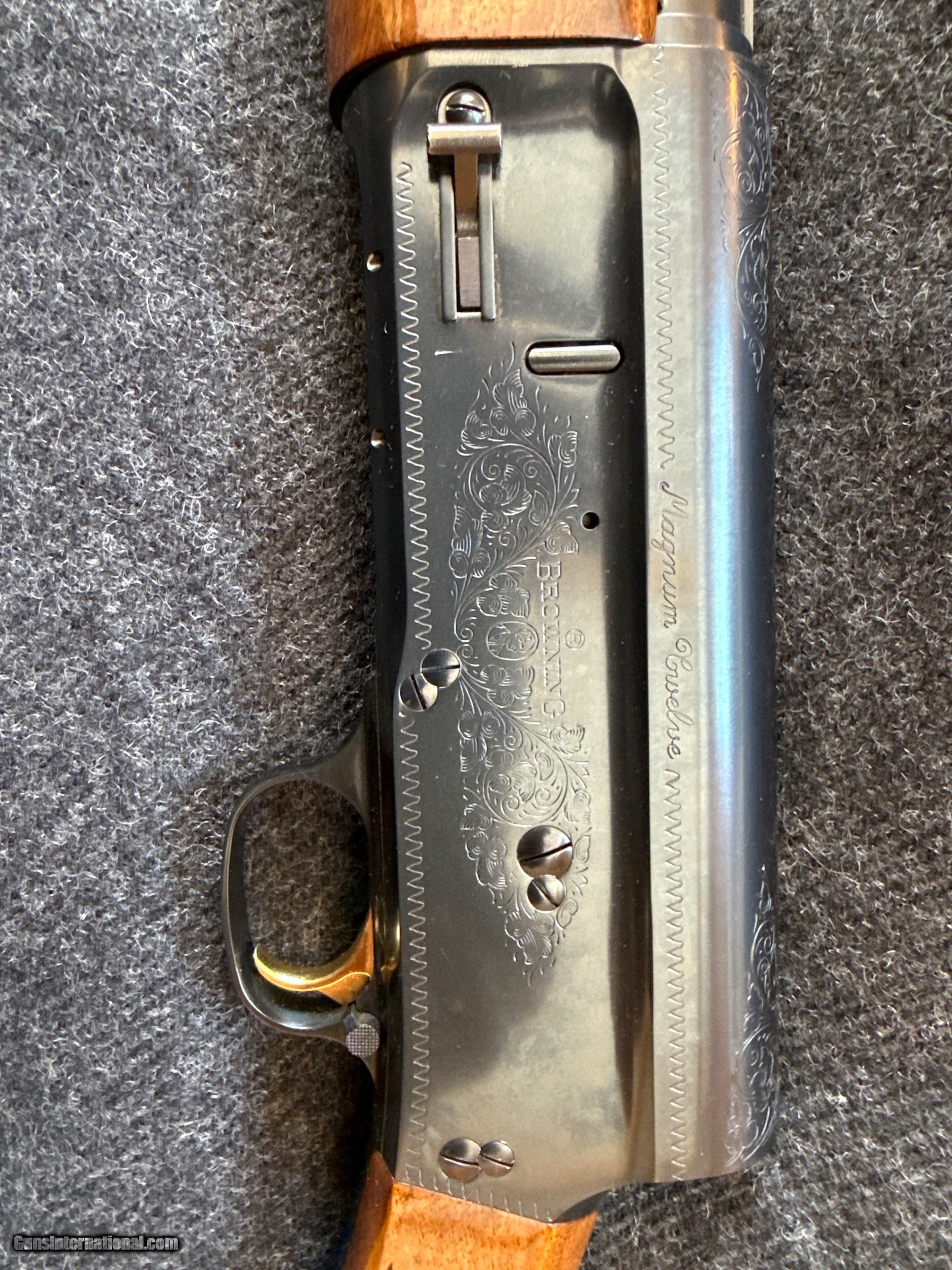 Browning A5 Magnum 12 Gauge with Iridescent Churl Fiddleback High Grade Walnut Stock and Forearm