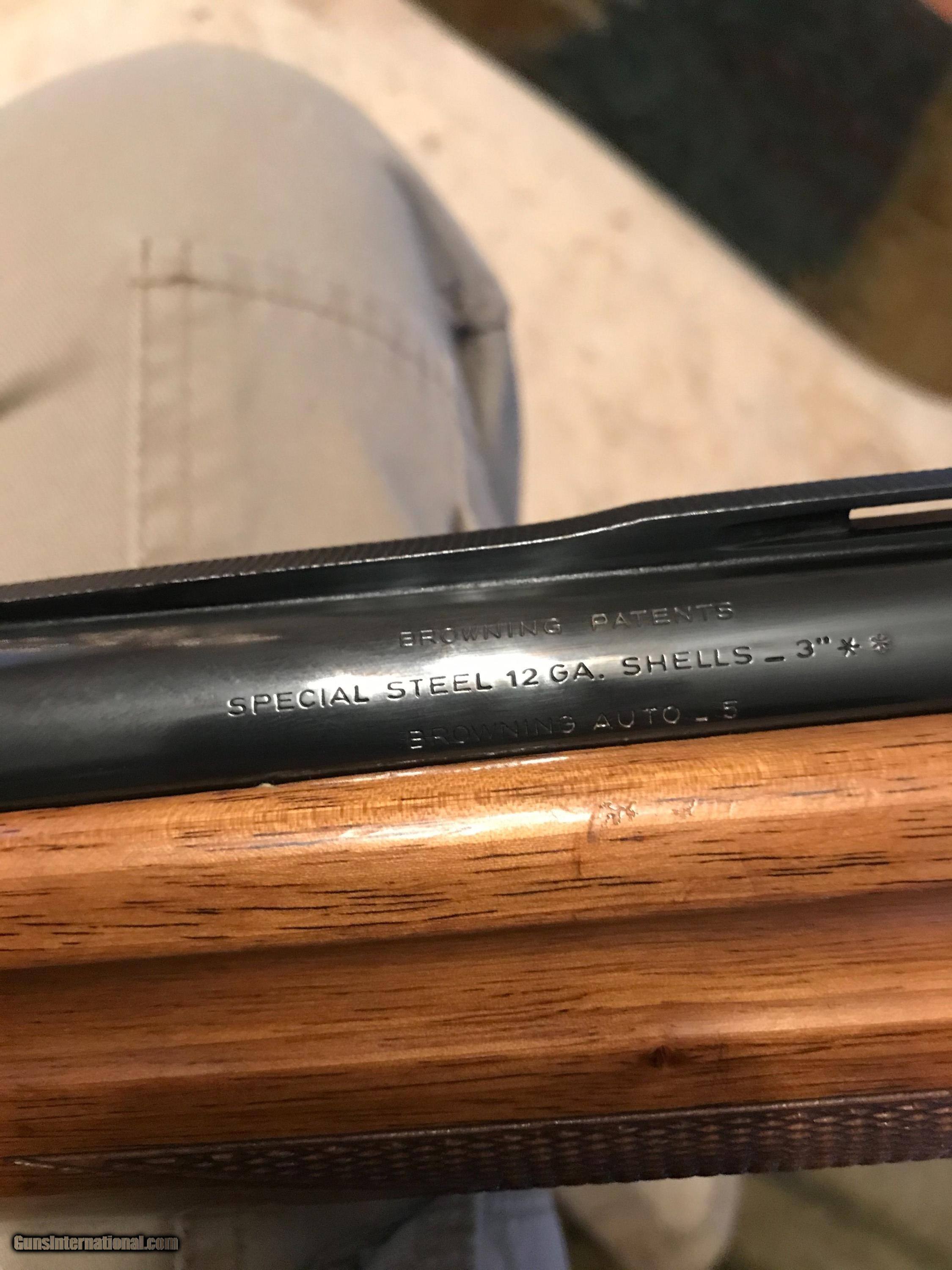Description: It is always a pleasure to get one of these Belgium A5s. This one is a 12 gauge magnum. Ventilated rib barrel. If I'm reading it correctly it has 2 stars, which is a modified choke. Wood is in great condition. No cracks in the forend. There are a few dings in the stock. On the top of the receive on the right side, there has been some rust that has removed spots of bluing (see pics). Original browning recoil pad. Just a super nice 52 year old shotgun! Please email with questions. Shipping included. Cards add 3%. SOLD Manufacturer: Browning Model: A5 Magnum Barrel Length: 27 inches Condition: Excellent Metal Condition: Excellent Wood Condition: Very good Bore Condition: Excellent Action: Semi auto Butt Pad: Yes, original browning Rib: Yes Finish: Blue Sights: Bead Manufacture Date: 1968 Chokes: Modified Item Location: 37075 |