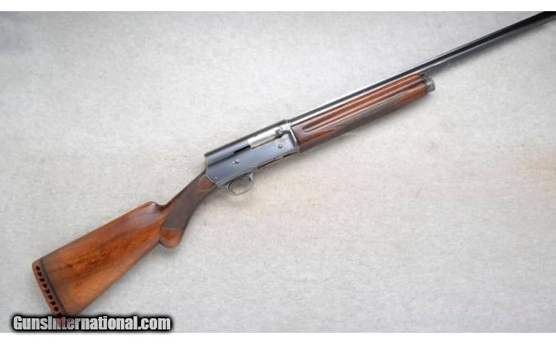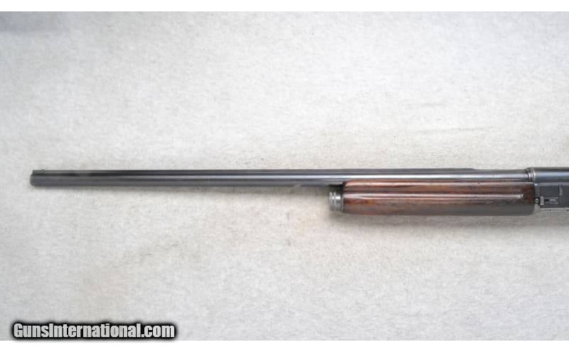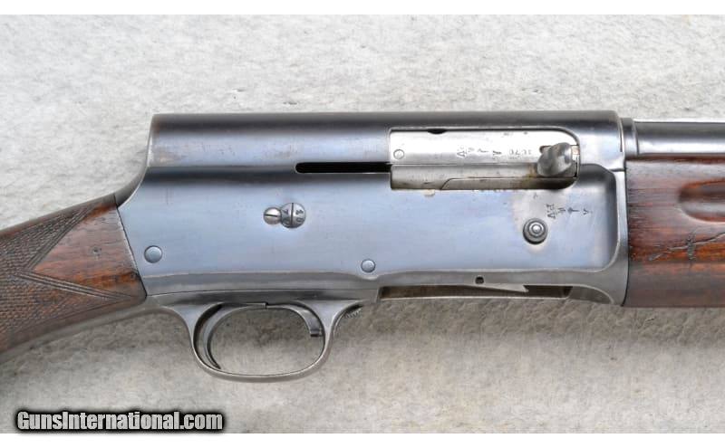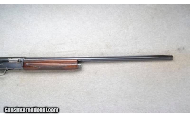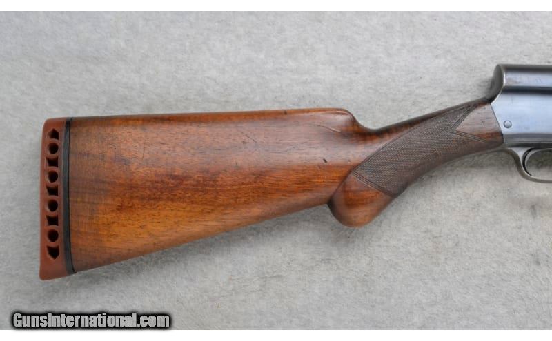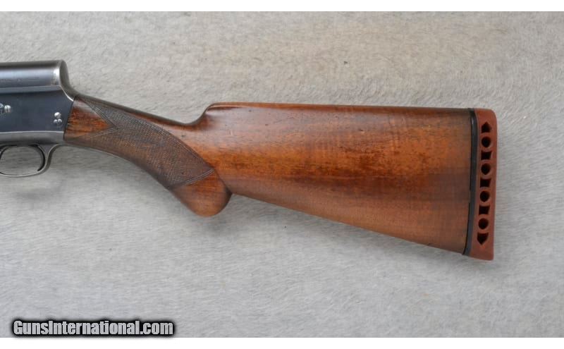 Description: This Browning Model Auto-5 is a right hand semi-auto shotgun in 16 Ga. It has a 29.5 inch barrel with a solid rib. A metal bead front sight. With a 2 9/16 chamber it has a fixed Full choke. The butt stock is a checkered grip walnut round knob pistol grip. The forearm is a checkered grip walnut with finger grooves. Serial Number 81070. Made in Belgium. 16 Gauge SOLD Chambers: 2 9/16 inch. Metal Condition: "Shows age, use, wear and freckling. Wood Condition: Has many handling/use marks. Hairline crack left side of forearm at the receiver. Bore Condition: Shiny. Barrels: 29.5 inch barrel with a solid rib. Stock Dimensions: LOP 14 5/8 inches. Fore End: Checkered grip walnut with finger grooves. Butt Pad: Red Head Brand red rubber recoil pad. Weight: 8 lb. 8 Oz. Sights: Metal front bead. Chokes: Fixed Full. Item Location: Richfield, WI |