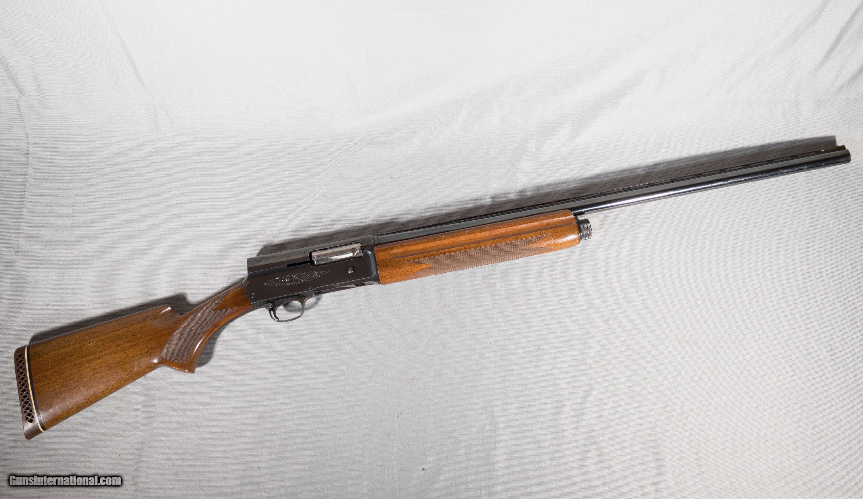 Description: The Browning Auto-5 is one of the most significant shotgun designs of all time, being the first commercially-successful and reliable semi-automatic shotguns ever produced. The Auto-5 was designed in 1902 by the esteemed John Moses Browning and lasted a production lifespan until 1999—nearly a whole century of production! The Auto-5 utilizes a gas-operated system which drives the whole barrel assembly backwards into the receiver to eject the spent shell, then as the barrel drives forward by a spring shrouded by the forend, the bolt is delayed to allow the next shell to be fed by the lifting gate before closing and completing the cycle. This Auto-5 shotgun is a 1972 Belgian-made Magnum model with 28" barrel. The Auto-5 Magnum is able to chamber up to 3"-length shells with more hotter loads and higher load capacity. The barrel is topped with a vented raised rib with texturing and single silver bead. The receiver's top surface is also grooved to combat glare. The barrel has a fixed full choke. The receiver of the Auto-5 does have a magazine cutoff lever on the left side and the receiver has hand-engravings adorning it throughout. The walnut furniture is gloss-finished and checkered for better grip and he stock does have an original vented rubber buttpad attached. The shotgun is in overall very good condition. The barrel has no rust or pitting and is quite clean for its age. The outside finishes on the receiver and barrel have most of their bluing intact. The barrel's bluing under the forend and between the action spring may have been re-blued at some point, but would be blended very well with the rest, if so. The receiver finish is certainly original to the gun but has the most wear around the ejection port—likely from many shells being shot through this gun. The wood forend and stock do have some handling marks, but no serious damage seems to be present. This Auto-5 Magnum does not include a box or case. 12 Gauge SOLD Chambers: 3 Metal Condition: Good Wood Condition: Good Bore Condition: Very good Barrels: 28 Fore End: Checkered gloss walnut Butt Pad: Vented rubber buttpad Weight: 8 Lbs 11 Oz. Sights: "Raised vented textured rib with single silver bead, grooved receiver Chokes: Fixed full choke Item Location: Kearney, NE |