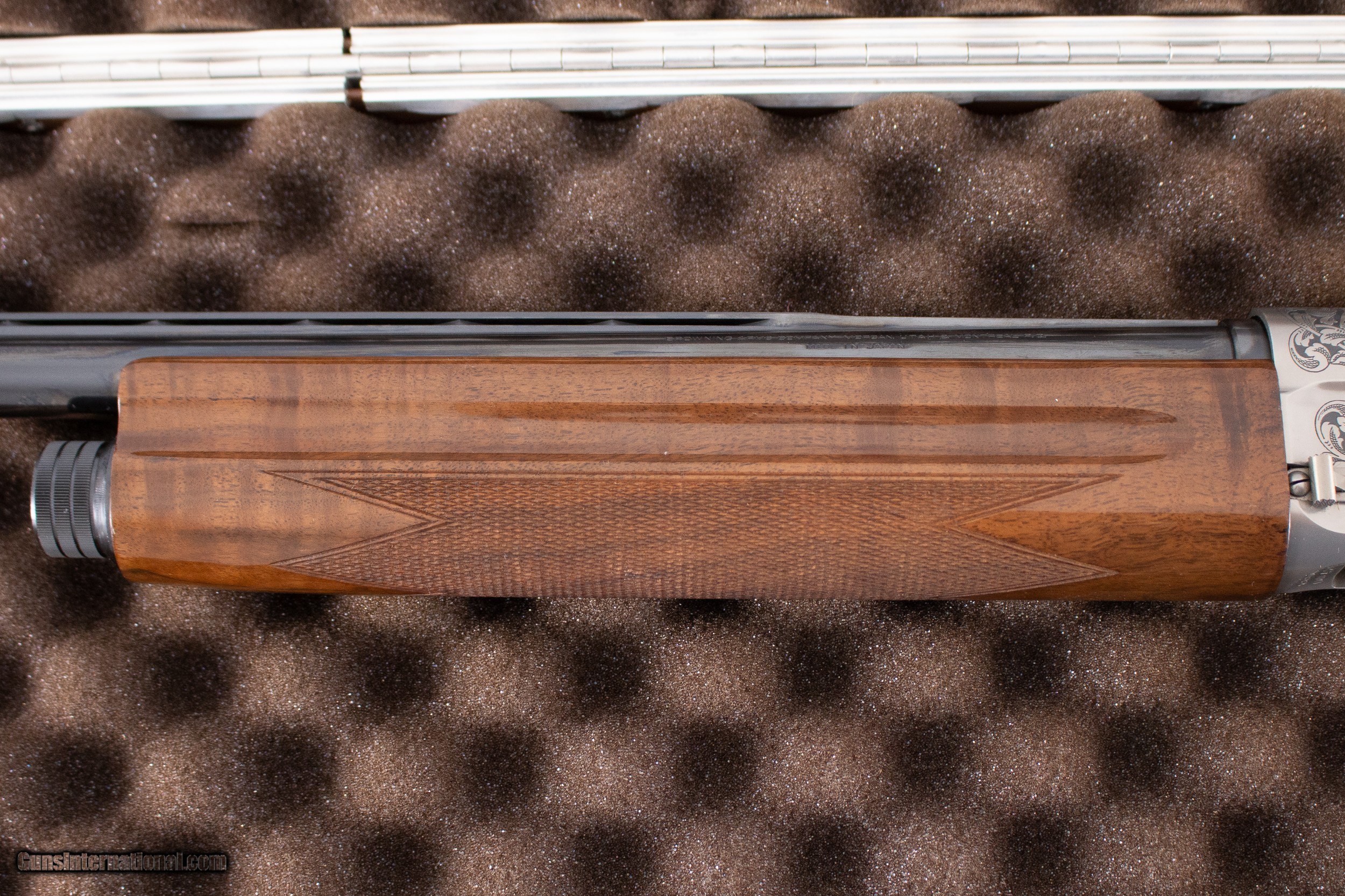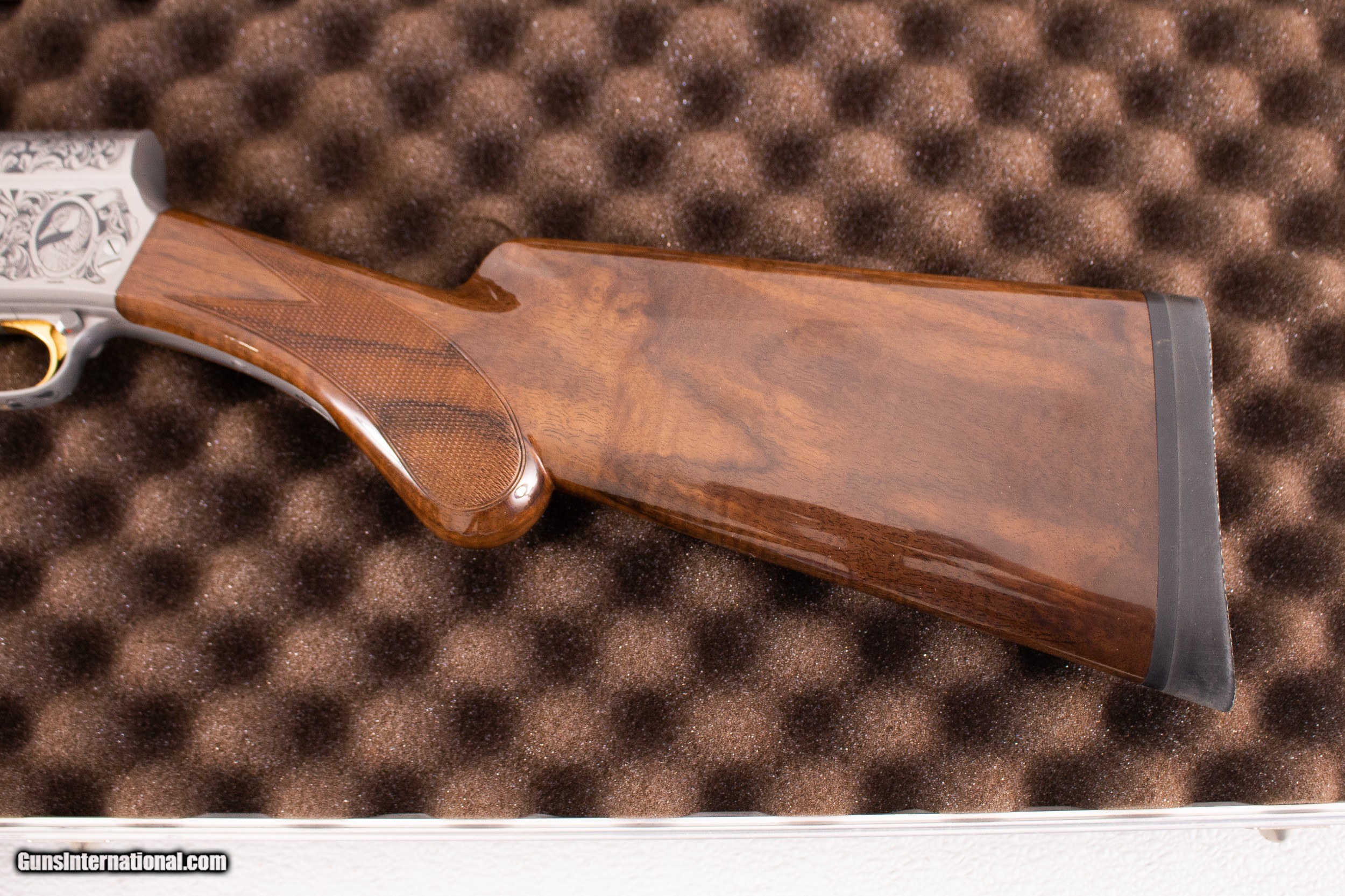 Description: MADE IN JAPAN IN 1988. BARREL IS 26'' WITH A VENT RIB AND INVECTOR CHOKED. NEW IN BOX. SIGNED BY I.NISHIKAWA. PLEASE ADD $75 FOR SHIPPING. Return Policy - We offer a three day return policy (minus shipping charges) on all firearms. 3 day return starts the day the FFL dealer receives the item. 25% restocking fee applied to all returned items. Prompt notification is required by telephone on any item to be returned. Notification must occur within the three day limit period. All returned items must be returned in the same condition as they were received. All sales are final if purchased in person. Shipping and credit card fees are non refundable. Terms - All firearms are sold "as is" with no warranty either expressed or implied. All guns are sold as antiques or collector's items and are not guaranteed as safe or intended for actual use unless inspected by a competent gun smith. Purchasers assume all liability for any firearms or merchandise purchased from Art's Gun Shop. All modern firearms purchased will require shipping to a licensed dealer. A signed copy of the Federal Firearms license(FFL) will have to be on file before the firearm can be shipped. SOLD Manufacturer: BROWNING Model: AUTO 5 Condition: NIB Metal Condition: NIB Wood Condition: NIB Bore Condition: NIB Triggers: SINGLE/GOLD LOP: 14 1/4'' Extras: BOOKLET Case: FACTORY CASE |