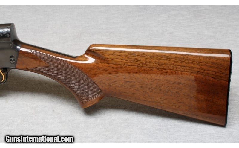Description: Excellent condition, light wear, few small nicks and scratches. Classic Browning semi auto 12 gauge. Blued metal, 28" ribbed barrel choked Mod. Engraved receiver, smooth action and trigger pull. Very nice high gloss finish checkered wood with Browning factory butt plate. 12 Gauge SOLD Chambers: 2 3/4 Metal Condition: Excellent Wood Condition: Excellent Bore Condition: Bright Barrels: 28 Triggers: Factory Stock Dimensions: 14" LOP Fore End: Checkered Butt Pad: Factory butt plate Sights: Single silver bead Chokes: Fixed Mod Item Location: La Vista, NE |