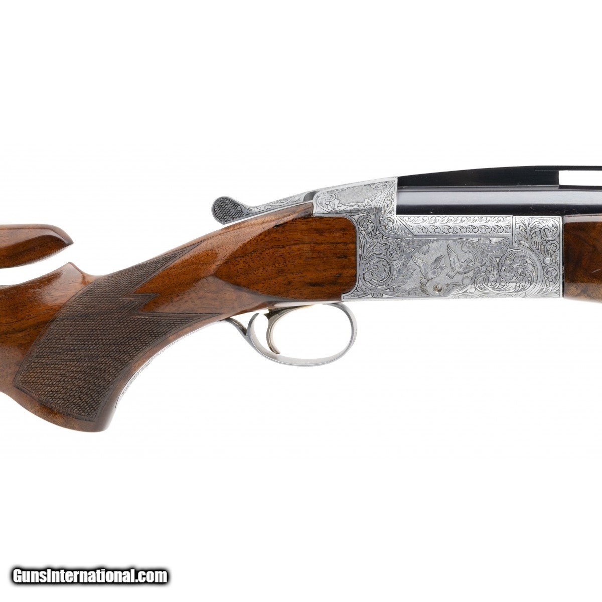 Description: "SN: 05492PZ299. Made in 1981. 12 Gauge with a 32"" improved mod. choke vent rib barrel. Bore is very good. High Grade Single Shot shotgun with hand engraved receiver engraved by M. Shimomura. Finish is in near excellent condition with minor wear noted. Deluxe walnut is in very good condition with light handling wear on the handguard with strong checkering and adjustable cheek rest. Overall very good condition. SOLD |