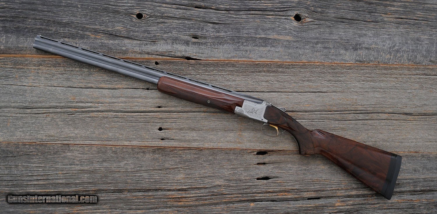 Description: Browning - Broadway Trap - 12 ga - Item Number: BRO10551S3 Shotgun type: O&U Action: Boxlock Ejectors: Yes Trigger: Single Grip: Pistol Grip Forend: Checkered Lop: 14 5/8 " Pad thickness: 1.25 " Type of butt: Kickeez Drop comb: 1 1/2 " Drop heel: 1 3/4 " Cast amount: 1/4 " Cast: OFF Weight: 8 lbs, 4 oz Manufactured in: Belgium Manufacture Year: Finish: Coin Overall condition: Very Good Stock condition: Very Good Metal condition: Very Good Stock: Original finish Metal: Original finish Type of Case: none Extra barrels: 0 Barrel info: Gauge: 12 ga Chamber: 2 3/4 " Length: 30 " Chokes: 2 Choke Tubes Rib type: Ventilated Comments : Very good condition, grip is initialed. SG-104 SOLD |