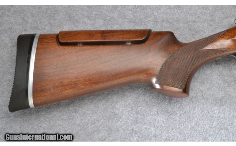 Description: Receiver show some blue wear to the underside with a few scuffs in the barrel blue. Bore remains excellent. Buttstock has been fitted with an adjustable comb and refinished. Forearm finish remains original with some light use marks. No box. Japan manufacture. SOLD Manufacturer: S/N 039337NPXXX Caliber Info: 12 GA Chambers: 2 3/4 Metal Condition: Very Good Wood Condition: Very Good Bore Condition: Excellent Barrels: 32" with Raised Rib Triggers: Factory - Checkered - Adjustable Stock: Checkered Walnut Pistol Grip with Adjustable Comb - Refinished Stock Dimensions: 14 1/8" LOP Fore End: Checkered Walnut Semi-Beavertail Butt Pad: Black Rubber Weight: 9 LB Sights: White Front Bead with White Mid-Bead Chokes: Choke Tube - Full Item Location: Wheeling, WV |