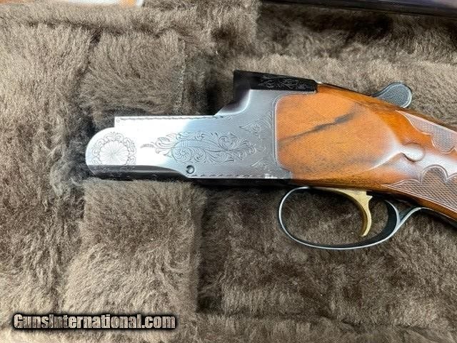 Description: This is a beautiful BT-99 from 1971. 34" barrel w/tubes, 14-3/8" LOP. Restocked in rare New Zealand walnut by Seattle custom gunsmith Bill McGuire. Checkering is very fine and of excellent quality. This 99 was a cover gun in Book of Shotguns, Winter 1978. This shotgun is a headturner and in immaculate condition. SOLD Shotgun Gauge: 12 Gauge Manufacturer: Browning Model: BT-99 Serial Number: 71D09574 Barrel Length: 34 Condition: Excellent Metal Condition: Excellent Wood Condition: Excellent Bore Condition: Excellent Triggers: Pull LOP: 14-3/8 Case: Yes |