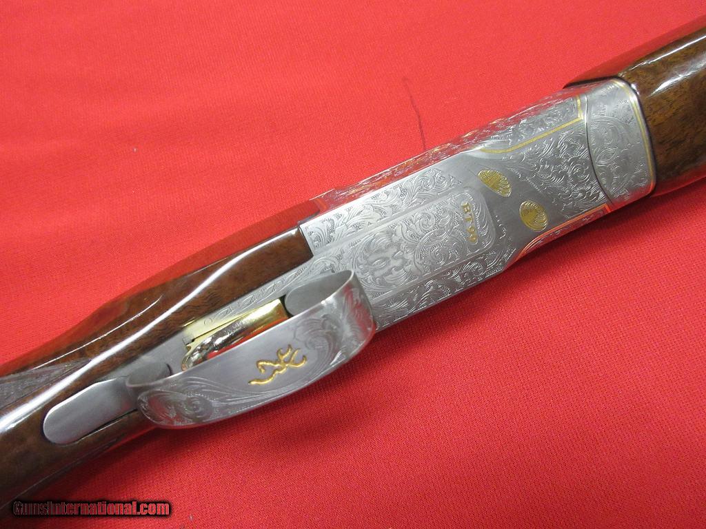 Description: Browning BT-99 Golden Clays 12ga/34" Inv+ (USED)-- Factory original and excellent condition haveing been well cared for: 20014 Mfg. factory adjustable comb, Gracoil recoil reduction system that is adjustable for LOP, threaded for Invector Plus choke tubes, nicely figured stock and forend, silver nitride receiver with full coverage scroll engraving surround golld clay targets and game scenes. SOLD |