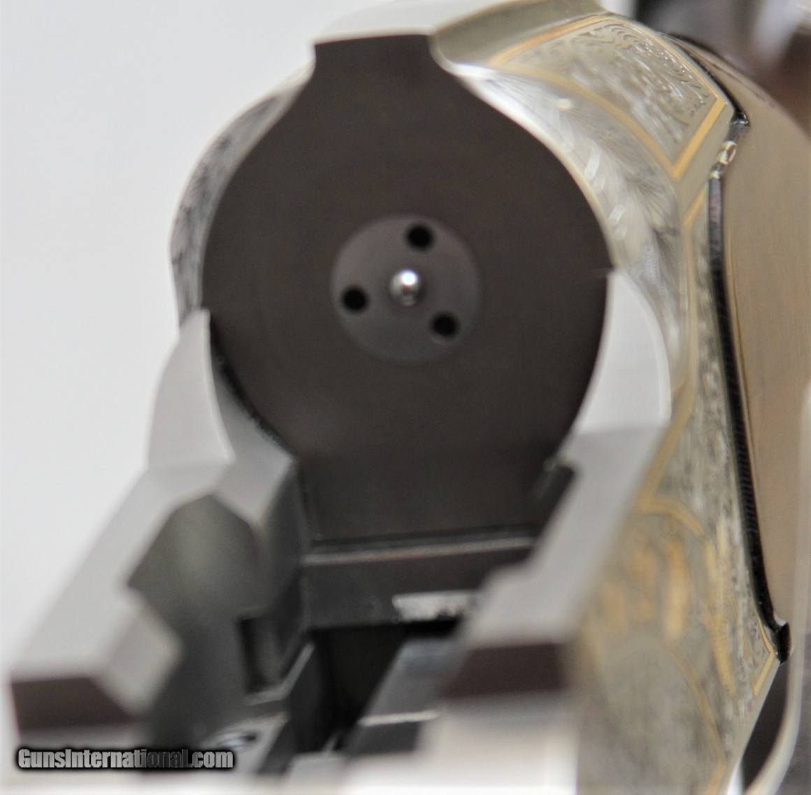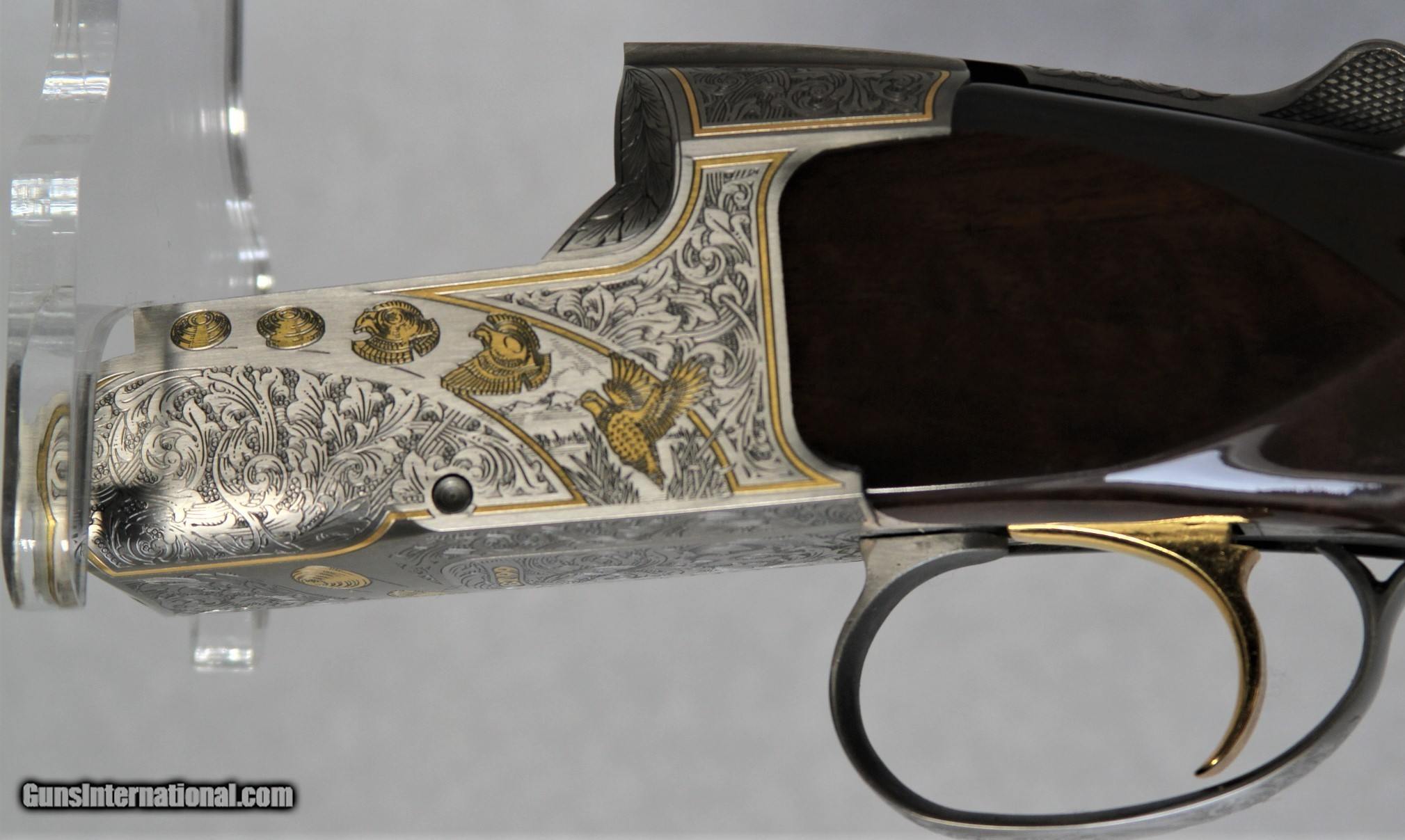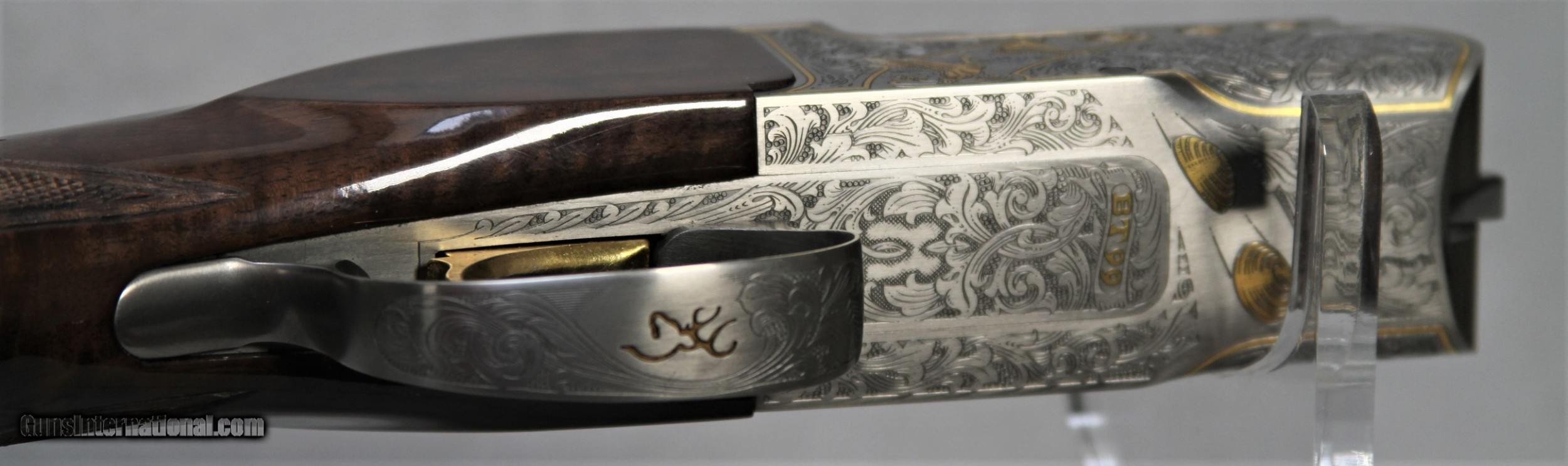 Description: This is a Browning BT-99 Golden Clays w/Adjustable comb manufactured in May 2014. It has full adjustability with a "GraCoil" recoil reduction system. It is furnished with Grade V/VI walnut. The receiver is embossed with "Golden Clays" engraving.It features an action with extractor only. It has a "Vector-Pro lengthed forcing cone and ivory front and mid-bead sights. The stock, as mentioned before, is gloss finish Grade V\VI walnut with beavertail forearm and a silver nitrade receiver featuring exquisite gold "Golden Clays" engraving. This was purchased by the previous owner NIB and was never shot except proofing at the factory. There are some very minor handling marks just from taking it out of the box and assembling. It comes in the original box with all accessories plus a Browning hard case for transportation. SOLD Shotgun Gauge: 12 Gauge Manufacturer: Browning Model: BT 99 Serial Number: 02608MP171 Barrel Length: 34 Bore: Clear Chambers: chrome plated Ejectors: extractor only Condition: LNIB Metal Condition: Excellent Wood Condition: Excellent Bore Condition: Clear and shiny Barrel Type: steel Stock: Walnut Grade V/VI Stock Comb: 1 9/16 Stock Heel: 1 3/4 Butt Pad: Adjustable LOP: 13 3/8 Rib: ventilated Finish: Highly polished blue Weight: 9 lbs Manufacture Date: 5/2014 Chokes: Full, IM, Mod Engraving: Golden Clays pattern on receiver Case: hard case included |