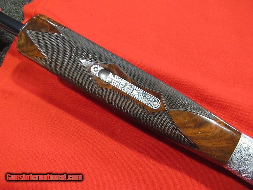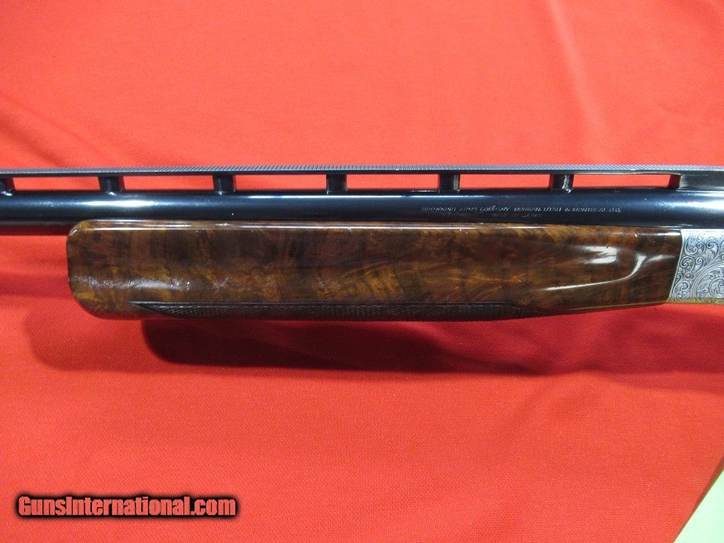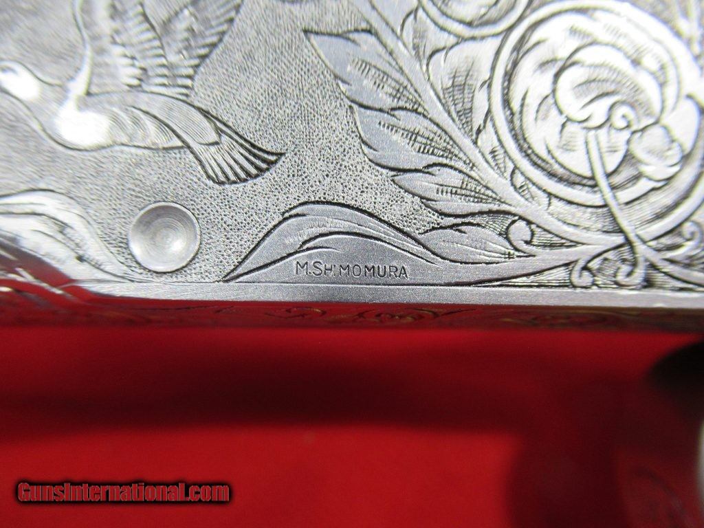 Description: 1981 Mfg Browning B-99 Pigeon Grade with the hand engraved coin finished receiver. The engraving is signed by M. SHIMOMURA. A Jones style adjustable butt plate has been added, the barrel has been ported (appears to be EYSTER), Nu-Line chokes have been installed (Mod, IM, LF, and Full), and comes in a hard case. SOLD |