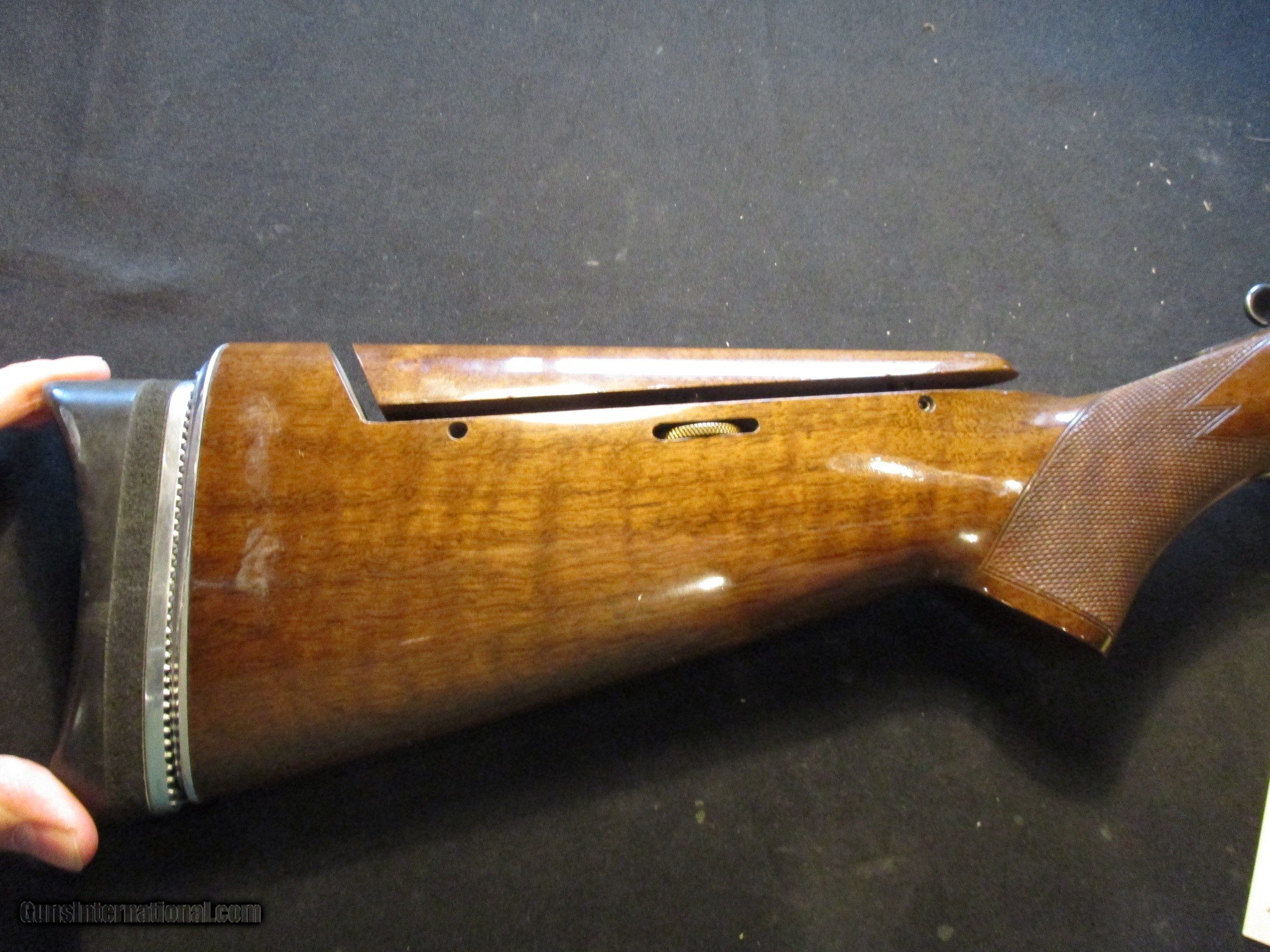 Description: Browning BT99 Single barrel, 12ga, 2.75" chmaber, 34" Vent rib barrel, release trigger, comes with two Colonial flush chokes. SN is 70D028xx. Factory finish on both wood and metal, LOP is 14 3/4" as pictured. Email me if you would like these pics sent to you, they will come through bigger and better than on the listing page here. We do offer Lay-A-Way. Our standard terms are 25% down, 90 days. Initial deposit is not refundable. Email me with any questions. I am a store front dealer, and I will close s if the gun sells locally. Once it has aI will pull it from my shelves. Please check your local laws to confirm it is legal to own in your state! Buyer pays $25 shipping and insurance to your FFL in the lower 48. AK, HI or PR is extra. I will ship to California, NO PROBLEM! All my guns come with a non-firing, 3 day unconditional return privilege, from the day UPS delivers to your dealer. Buyer pays shipping both ways if the gun comes back. I can add a new hard case by PLANO for secure shipping for $25 if the buyer wishes (highly recommended, cheap insurance, really helps keep the UPS monster from eating my guns!). No sales tax on guns ship out of Kansas, guns sold in Kansas are subject to Kansas sales tax. I am a licensed FFL, and will include a copy of my FFL with the gun for your dealer’s records. I will ship to a C&R if the gun is eligible. I will ship to California, but you need to confirm the gun is legal where you are, California or other. WE BUY AND CONSIGN GUNS AND GUN COLLECTIONS! We will travel to pick up collections! I am always looking for good clean, old original Winchesters to buy, consign, or trade, especially Pre '64's model 70's and model 54's. WE ALSO TRADE FOR CLASSIC CARS AND TRUCKS! Email me with any questions, and good luck! SOLD |