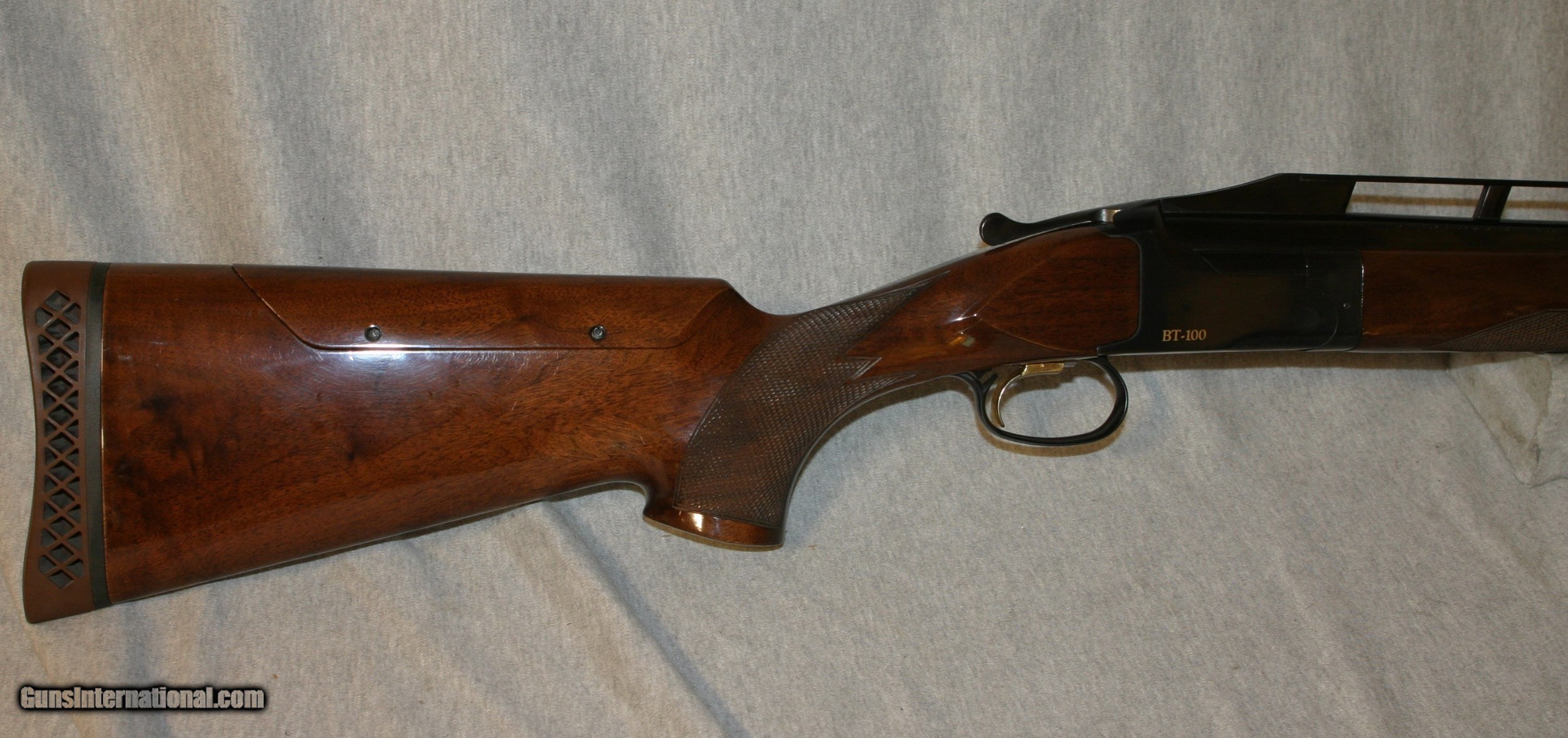 Description: BROWNING BT-100 TRAP WITH 34" FACTORY PORTED BARREL AND INVECTOER PLUS CHOKES. THE STOCK HAS A LOP OF 14" AND ADJUSTABLE COMB. VERY GOOD CONDITION,FEW HANDLING, GREAT PRICE. INCLUDES BROWNING HARD CASE AND ORIGINAL BOX. SOLD |
