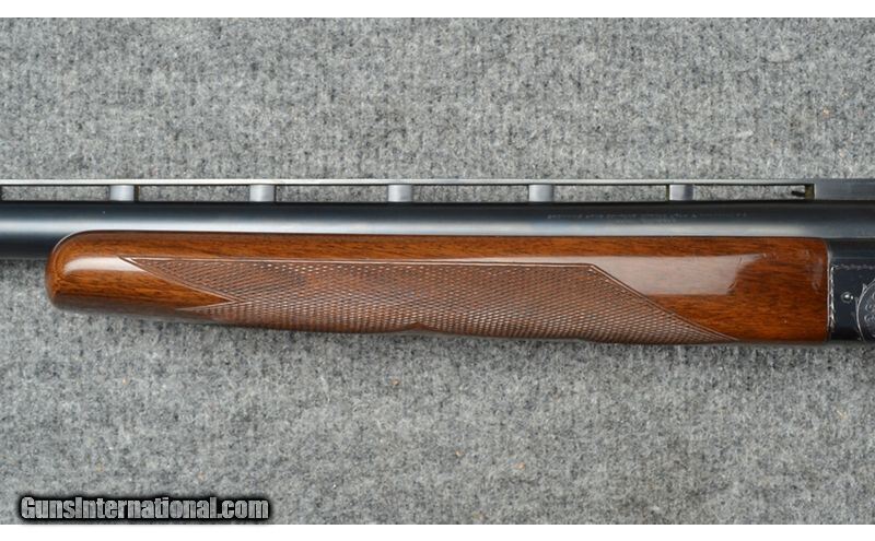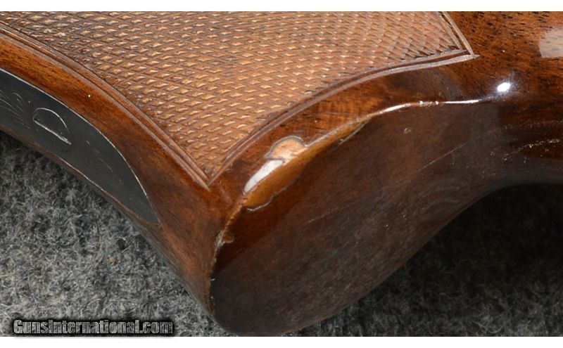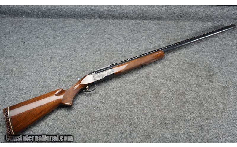 Description: This Browning shotgun is in excellent, overall, condition. The stock, pommel, and fore end show light wear from use. The barrel bluing is thinning around the muzzle and there is a light scratch on the left side of the barrel. The receiver is worn lightly and the engraving stands out. The action breaks smoothly and the bore is clean. 12 Gauge SOLD Chambers: 2 3/4 Metal Condition: Excellent Wood Condition: Excellent Bore Condition: Excellent Barrels: 32 Triggers: Gold plated Stock Dimensions: 14 3/8" LOP Fore End: Checkered Butt Pad: Brown Trap Weight: 8 Lbs. 3 Oz. Sights: "Ivory bead front sight, with rear bead. Chokes: Invector-Plus Flush Item Location: Gainesville, VA |