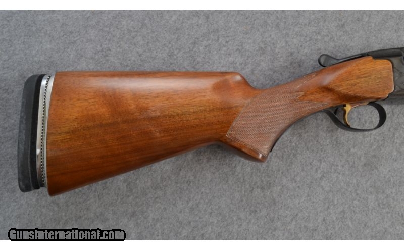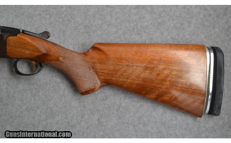 Description: SOLD Manufacturer: S/N 01160RN109 Caliber Info: 12 Gauge Chambers: 2 3/4 Inches. Metal Condition: Very good condition with slight handling marks noted. Wood Condition: Very good with light handling marks. Bore Condition: Very Good Condition. Bright and shiny. No bulges or pitting noted. Barrels: 34 Inches, vent rib, fixed full choke. Also includes a 34 inch, vent rib, fixed modified choke barrel. Triggers: LOP - 13 1/2 Inches Stock: Straight checkered walnut. Fore End: Straight checkered walnut. Butt Pad: Morgan adjustable recoil pad. Weight: 8 Lbs 2 Oz Sights: Front and mid beads. Chokes: Fixed full choke and a second barrel with fixed modified choke. Extras: Includes a Browning naugahyde fitted hard case. Item Location: Lone Tree, CO |
