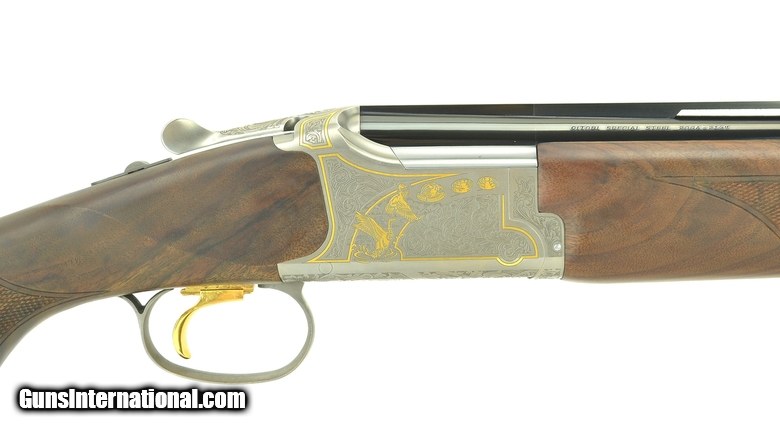 Description: Browning 525 Citori 20 Gauge Shotgun. Golden Clays over/under with 30” barrels. Engraved and gold inlaid receiver and deluxe figured walnut. Excellent condition with box, chokes and accessories.