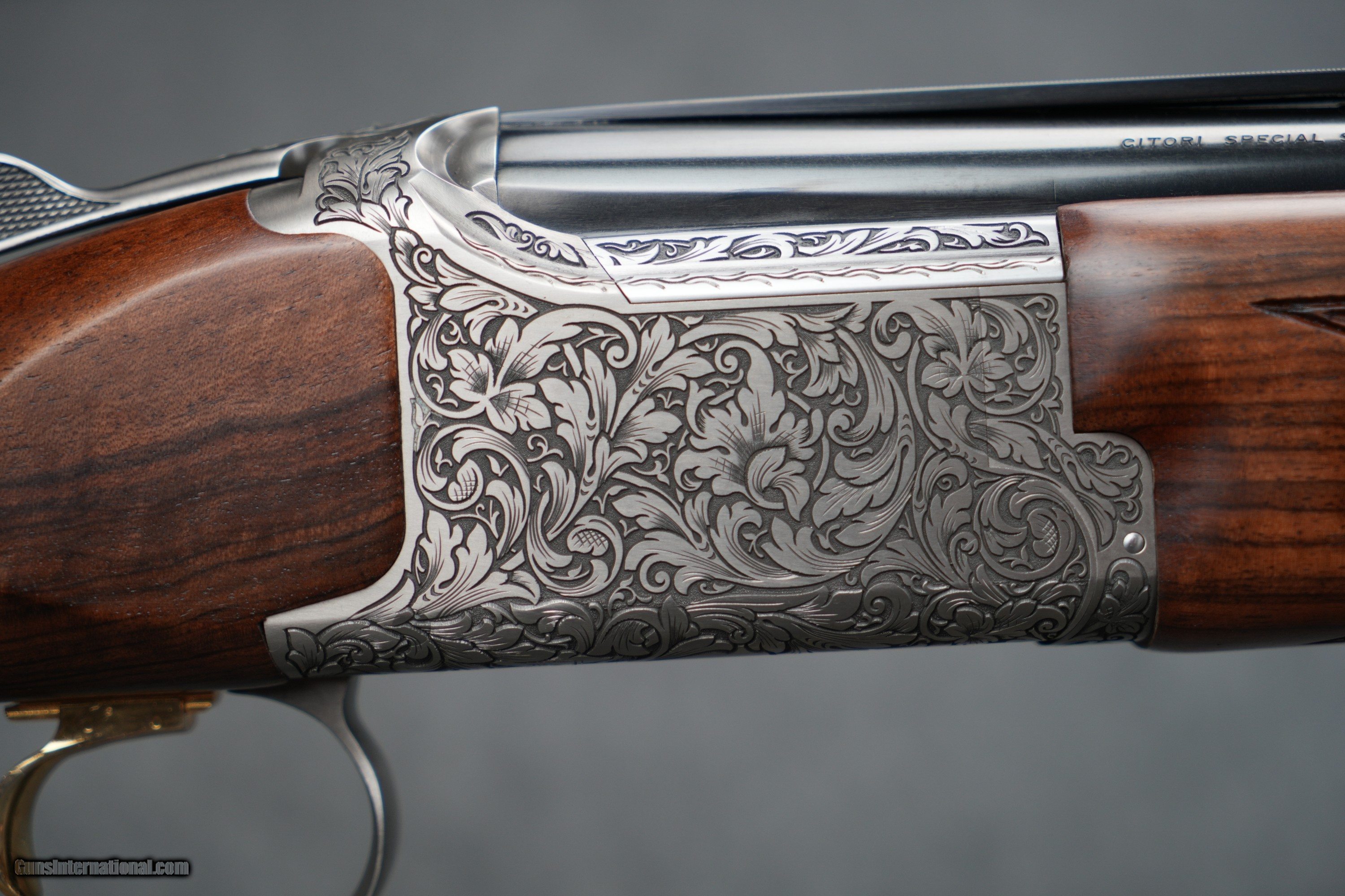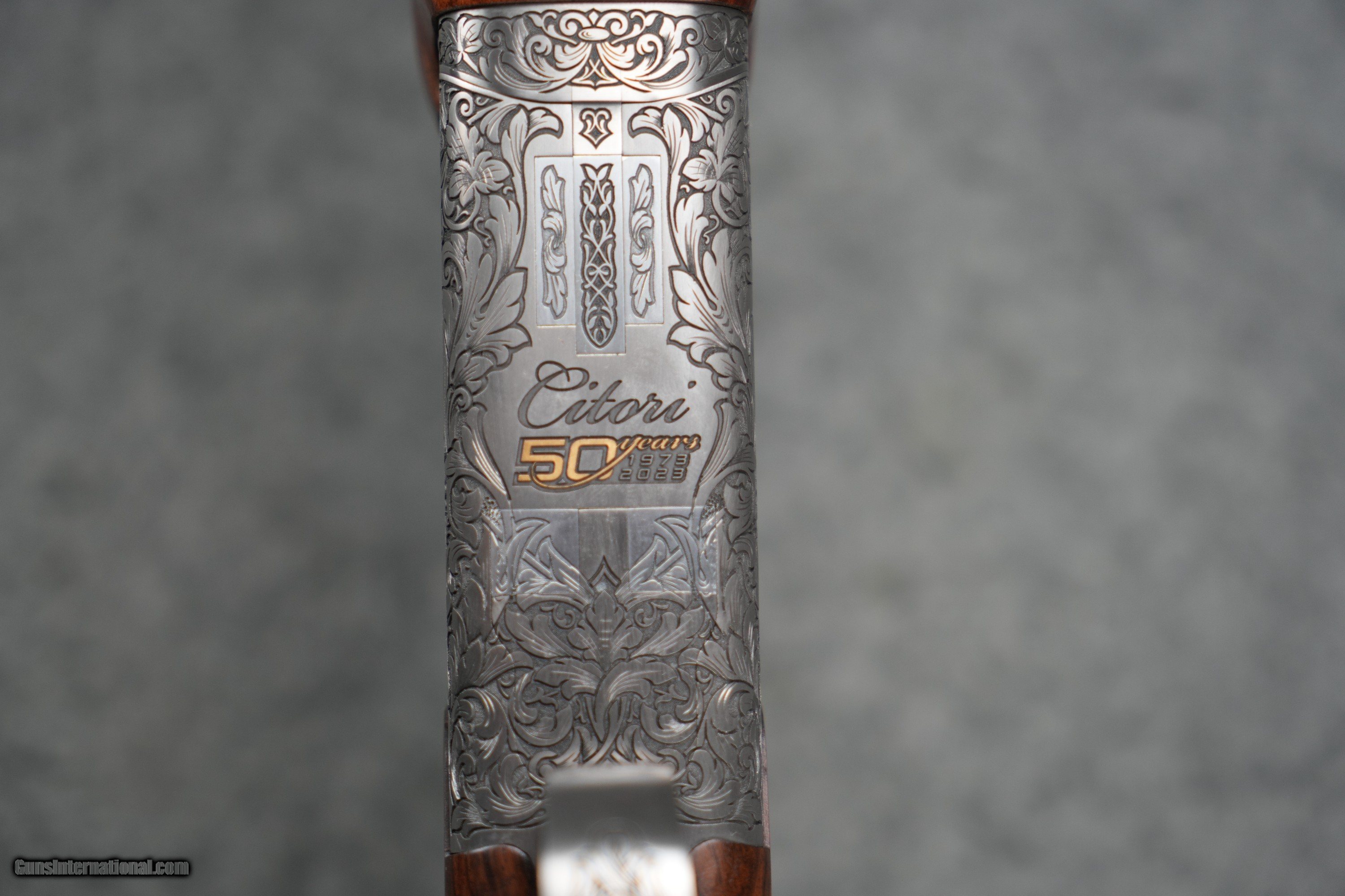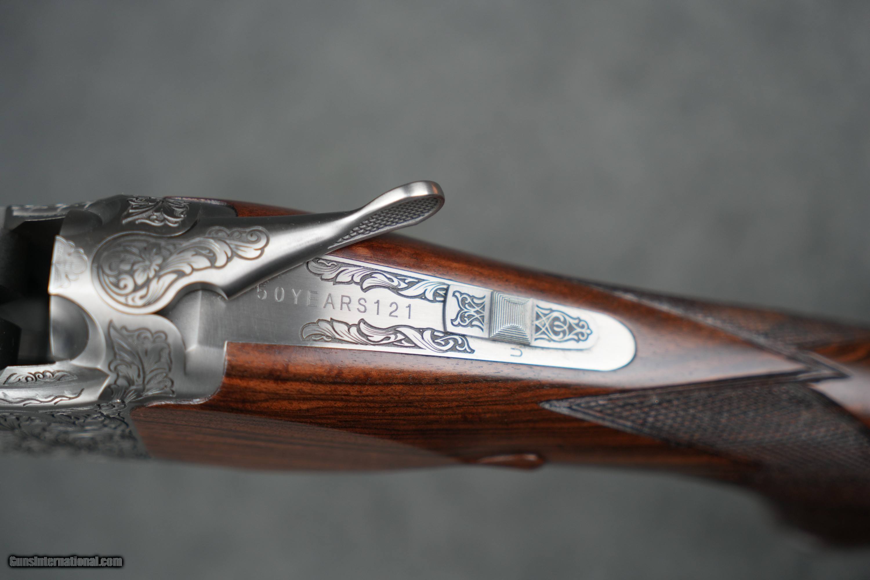 Description: The Browning Citori High Grade 50th Anniversary is a VERY LIMITED RUN! Each one of these has a dedicated serial number that begins with 50YEARSXXX. This particular one is 50YEARS121. The wood is absolutely GORGEOUS with a ton of figure! The engraving is so finely done and extensive, and bound to turn heads! Please do not skip over this, as this is insanely limited. John M. Browning is the greatest gun designer of all time. No other was more prolific and developed such a wide variety of firearms. From the original Single-Shot rifle to the Model 94 lever-action rifle to the Model 1911 handgun to the M2 .50 caliber machine gun to the Auto-5 shotgun, Browning developed tough, reliable arms for hunting and to help secure freedom around the globe. Although he passed away before it was manufactured, one of his final designs ranks among his most successful and beloved by shotgun enthusiasts, this gun is the Superposed. Although the idea of having one barrel above the other was not a new idea, the Superposed was the first commercially successful over and under shotgun. Browning himself was a shotgun enthusiast, and it was his belief that a double-barrel shotgun with a single sighting plane, single selective trigger, and a reliable operating mechanism would be superior to the side-by-side models of the era. He designed the Superposed using the same gift of ingenuity with which he used to develop his other designs; resulting in a tough and supremely reliable firearm that, once again, steered the course of history. In 1973, Browning launched the successor to the famed Superposed — the Citori. Produced by Miroku Corporation in Nangoku, Japan, the Citori utilized the same design as the Superposed, and included a number of changes to the original design that streamlined manufacturing and made the Citori more affordable, putting these fine shotguns in the hands of even more users. 50 years later, the best-selling Citori continues to inspire shooters with balanced handling, unwavering reliability, and traditional elegance. This commemorative High Grade 50th Anniversary model includes extensive receiver engraving with gold accents and a beautifully finished Turkish walnut stock and forearm. As with every Citori, it is manufactured following an exacting hand-fitting process that is performed by the skilled hands of the men and women at the Miroku facility. Silver nitride steel receiver features extensive engraving with 24 karat gold enhancement and 50 years logo Grade IV Turkish walnut stock with proprietary premium gloss oil finish process, cut checkering, right-hand palm swell, and name-plate inlay for owner’s initials Letter of authenticity High-gloss blued barrels Triple Trigger System with three trigger shoes HiViz® Pro Comp sight and ivory mid-bead Five Midas extended choke tubes POI: 50/50 Ideal for sporting clays/skeet/hunting Gauge 12 Chamber Length 3 Barrel Length 32 Overall Length 49 1/2 Length of Pull 14 3/4 Drop at Comb 1 1/2 Drop at Heel 1 1/4 Weight 8 lbs 1 oz Rib Width 3/8 - 1/2 Barrel Finish Gloss Blued Stock Finish Gloss Oil Wood Grade Grade IV Chokes Included Full, Improved Modified, Modified, Improved Cylinder, Skeet Receiver Finish Silver Nitride Chamber Finish Chrome Plated Chamber Front Sight HiViz Pro-Comp Choke System Invector-Plus Midas Barrel Material Steel Stock Material Turkish Walnut Recoil Pad Inflex 2, Large Checkering Cut 20 LPI Sling Swivel Studs None Receiver Material Steel Trigger Finish Gold Plated Trigger Guard Finish Silver Nitride Trigger Material Alloy Trigger Guard Material Steel Trigger Guard Engraving Hand Choke Wrench Included T-Wrench SOLD Shotgun Gauge: 12 Gauge Manufacturer: Browning Model: Citori 50th Anniversary Barrel Length: 32" Barrels Condition: BRAND NEW |
