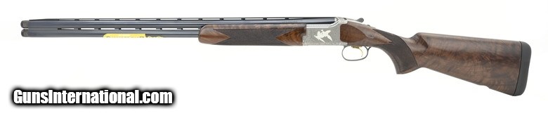 Description: " Browning Citori 725 “Sporting” Grade VII 12 Gauge shotgun. Has 30” barrels, gloss finish, pad, 3 trigger shoes, Pro Comp sight with mid Rib ivory bead. Receiver has bird and dog accents. 5-Extended black Midas grade chokes and a Browning signature leather case included. New.