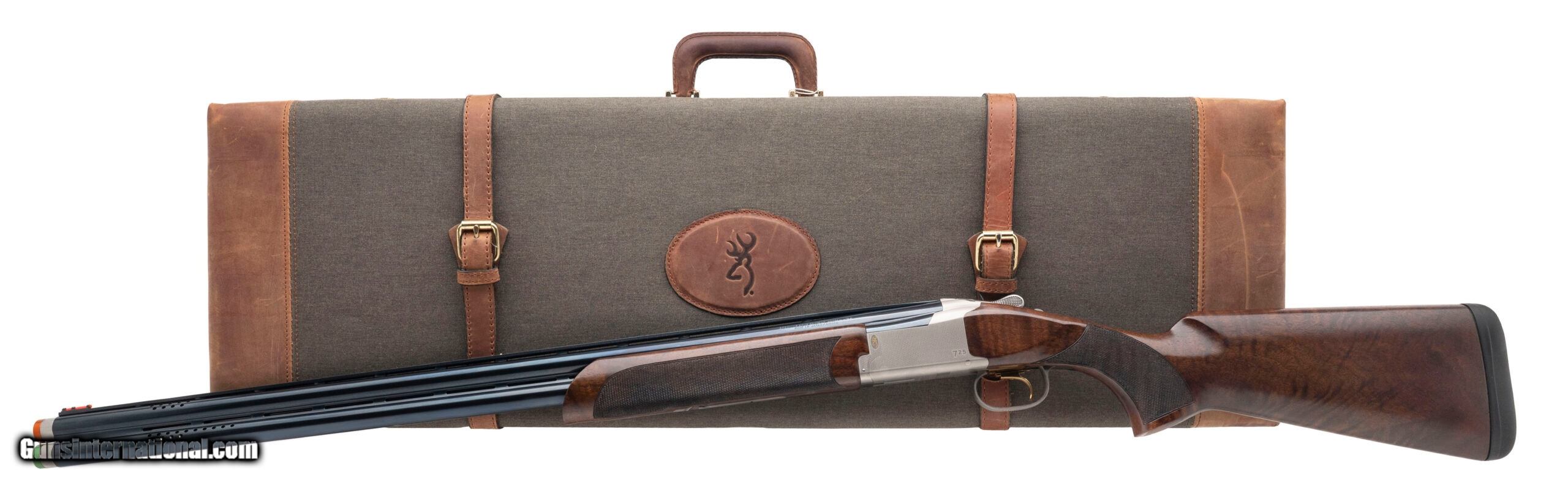 Description: "SN: 16310ZR131 modern production 12 gauge over under sporting shotgun with 30" vent rib ported barrels with middle bead and fiber optic front sight, 3" chambers and screw in Invector DS chokes. Box lock with ejectors, selective single trigger gold plated and adjustable and a manual safety. Checkered walnut furniture with a 14.75" LOP to the original recoil pad with a right hand palm swell. Overall in near excellent condition. Comes with fitted canvas case, Full set of Browning extended chokes and full set of Briley extended chokes, tools and spare triggers. Price: $3,250.00 Contact Seller |