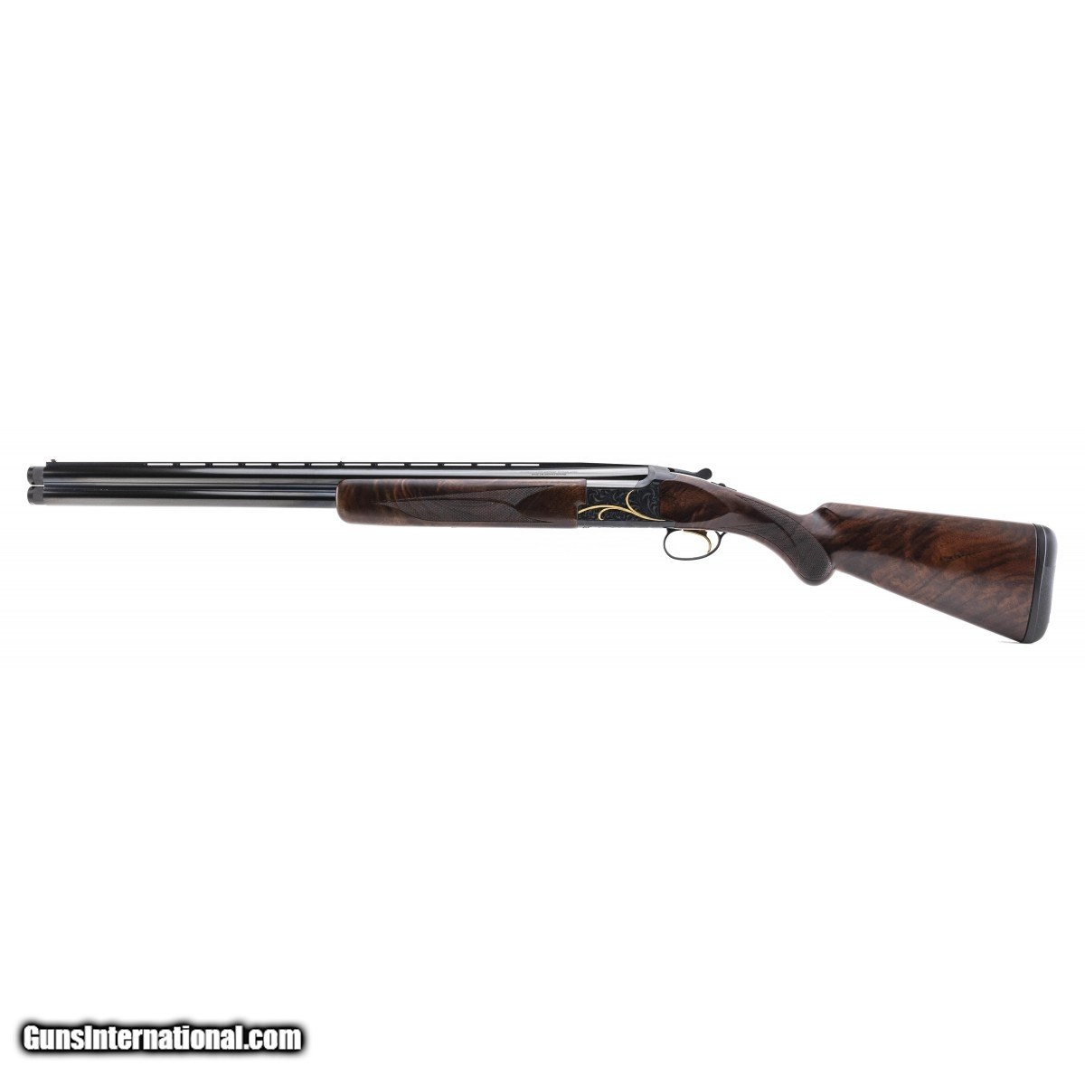 Beautiful over/under field gun with deluxe figured walnut stocks and 26"" barrels with extended chokes. Receiver is engraved with a foliate motif with gold inlays. A fantastic looking over/under. Comes with box and extra chokes.