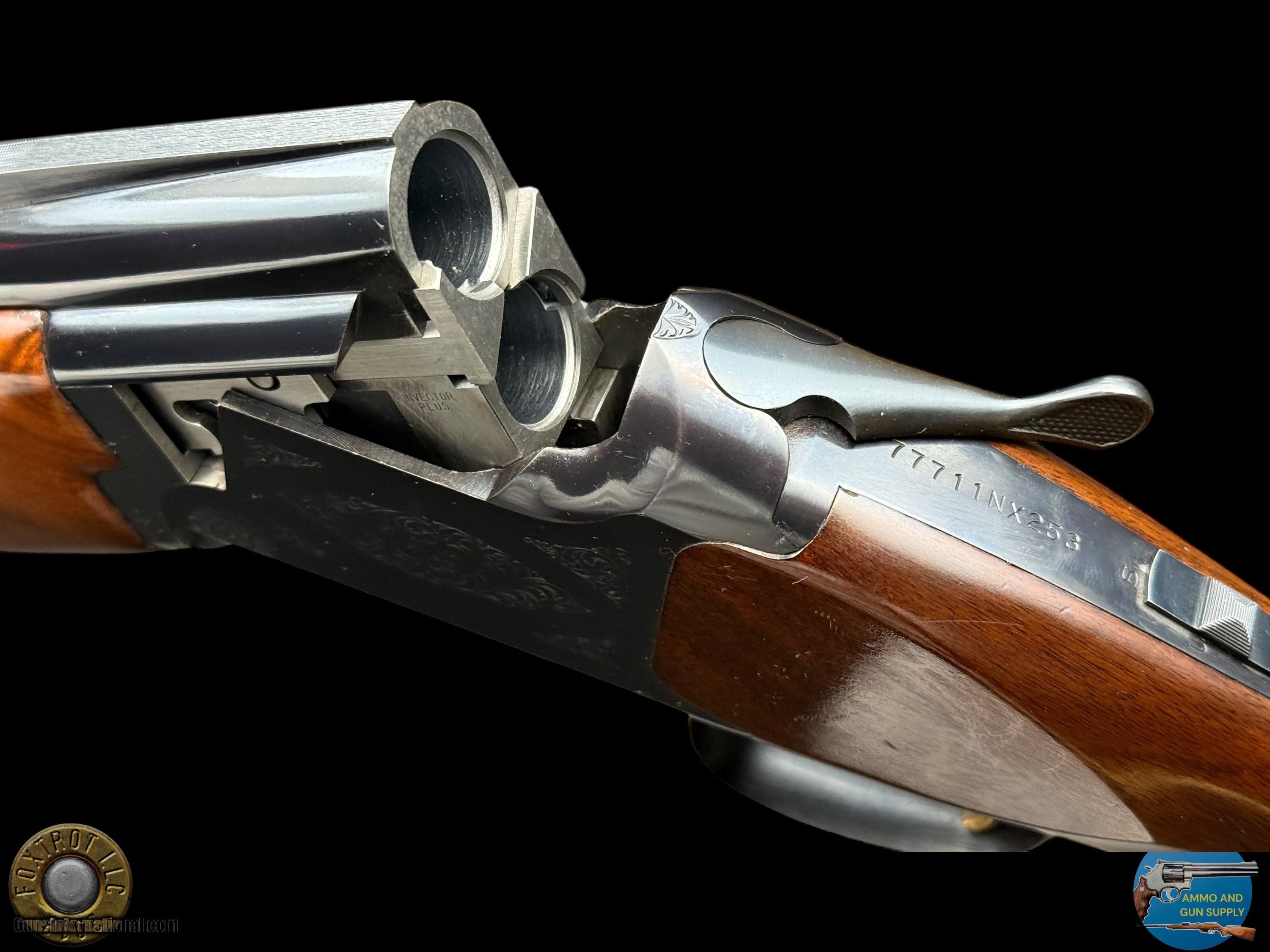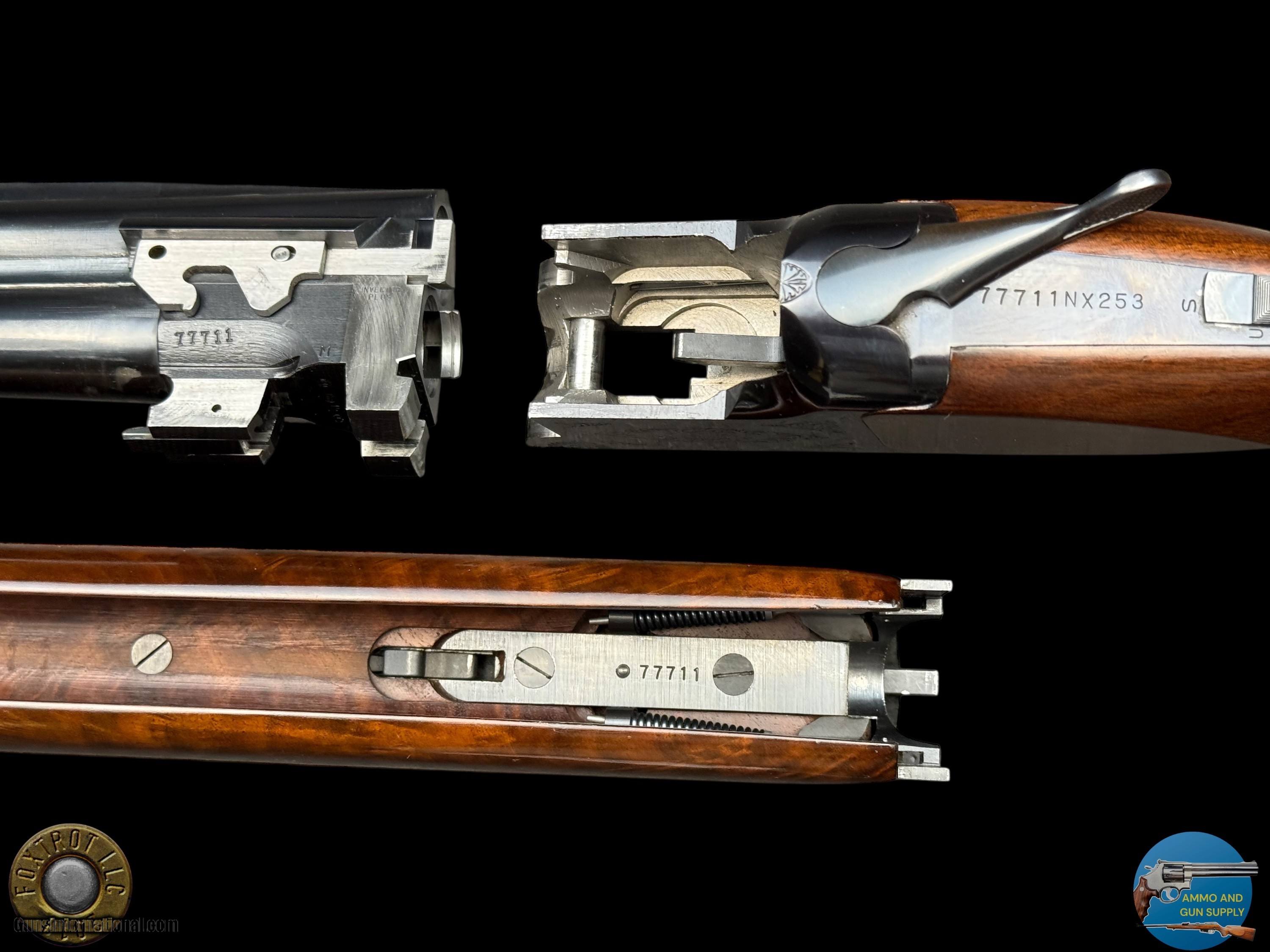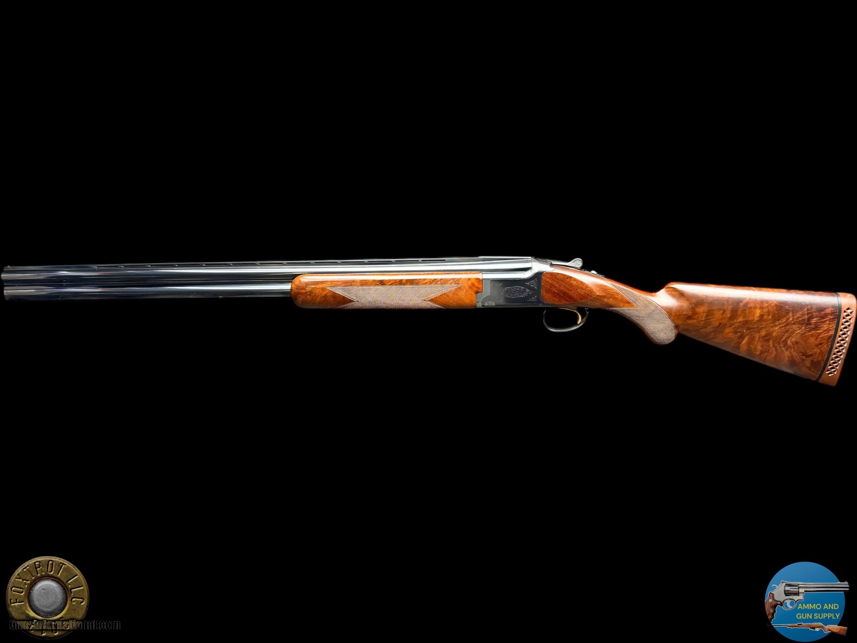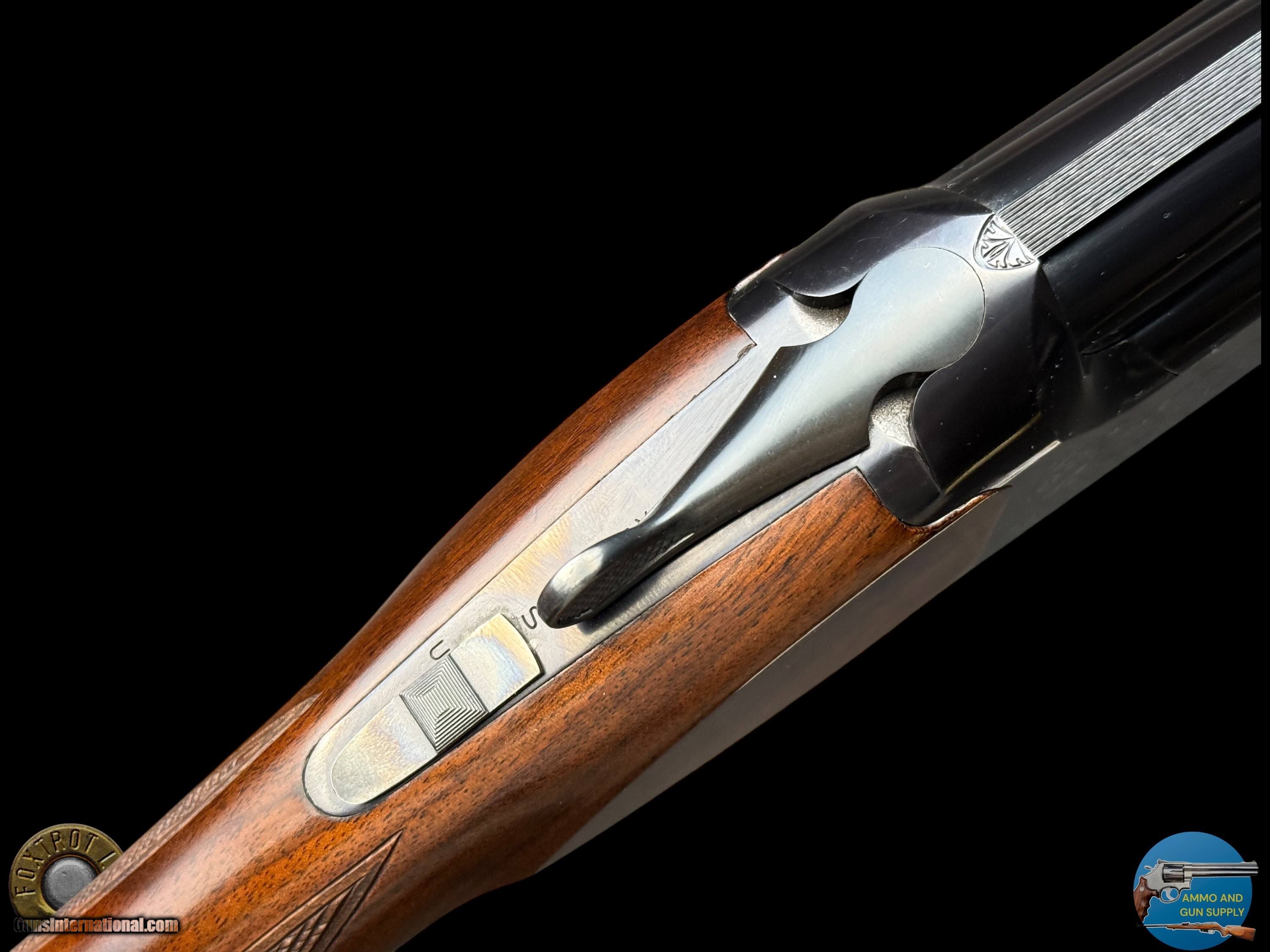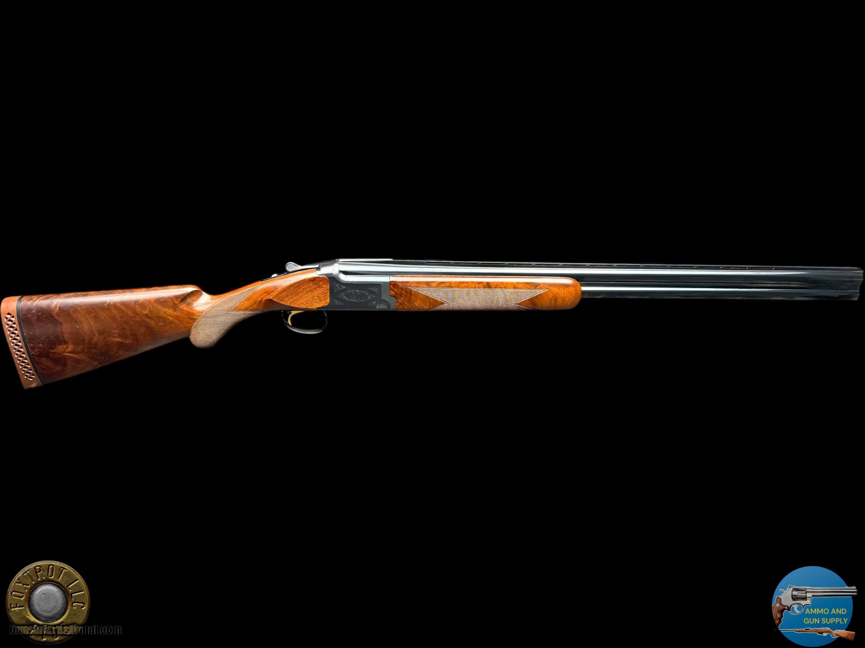 Description: 1993 BROWNING CITORI 12 GA 3" - 28" BARRELS - INVECTOR PLUS - CASED - ROUND KNOB LONG TANG MANUFACTURER - MIROKU - JAPAN FOR BROWNING USA MODEL - CITORI ACTION - BOXLOCK OVER/UNDER WITH SINGLE SELECTIVE TRIGGER AND EJECTORS SN - 77711NX253 GAUGE - 12 GAUGE 2.75" OR 3" CHAMBERS BARREL LENGTH - 28" SOLID RIB BARRELS CHOKES - INVECTOR PLUS CHOKES - 1X SKEET 1X MODIFIED 1X FULL CAPACITY – 2 DAC - 1.625" DAH - 2.375" LOP - 14.25" TO BROWNING VENT RUBBER RECOIL PAD WEIGHT - 8 LB 3 OZ SIGHTS - VENT MATTED RIB WITH SILVER FRONT BEAD PRODUCED - 1993 This 1993 Browning Citori 12 gauge is a classic, Japanese-made over/under built by Miroku for Browning USA. Chambered for both 2.75" and 3" shells, it features 28" solid rib barrels threaded for Invector Plus chokes, with three included: skeet, modified, and full. The boxlock action is fitted with a single selective trigger and strong, timed ejectors. Weight is 8 lbs 3 oz, with stock dimensions of 1.625" drop at comb, 2.375" drop at heel, and 14.25" length of pull to the Browning ventilated rubber recoil pad. The sighting rib is vent-matted with a silver front bead. Condition is very good overall, with only faint wear consistent with age and careful use. The bores are bright and clean, the trigger breaks crisply, the action is smooth, and lock-up remains tight. Both barrels and action retain 99% of their original blued finish. The walnut stock and forend show striking figure, highlighted by sharp checkering on the round knob pistol grip and matching forend. Wood shows only the lightest handling marks, giving the gun both excellent presentation and practicality. This Citori comes housed in a fitted Griffin & Howe green canvas case with leather straps, brass hardware, and green felt interior with Griffin & Howe maker’s label. A fine example of a desirable early-’90s Browning Citori—elegant, durable, and complete with a premium fitted case. Perfect for the upcoming hunting season! Please call now - 315-689-0000 FLAT $75 S/H/I. 4%CREDIT CARD FEE APPLIES. FOXTROT IS A LICENSED FFL DEALER WITH MANY POSITIVE FEEDBACKS SO BUY WITH CONFIDENCE! SOLD Shotgun Gauge: 12 Gauge |