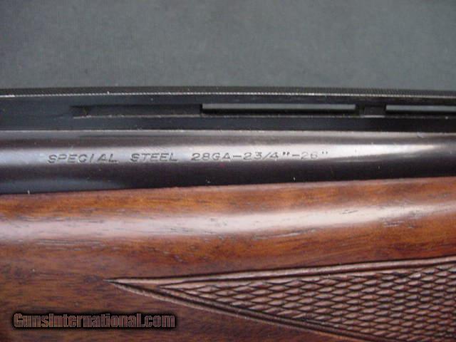 Description: 5068 Browning Citori 28 gauge 26 inch barrels,ic/mod,STRAIGHT GRIP, schnabel forend, vent rib, ejectors, nice contrasting straight walnut grain,butt plate all original, safe queen,s/n131xxPM173,late 80'smfg, Browning case and keys. 99% condition, AS NEW IN CASE. SOLD |