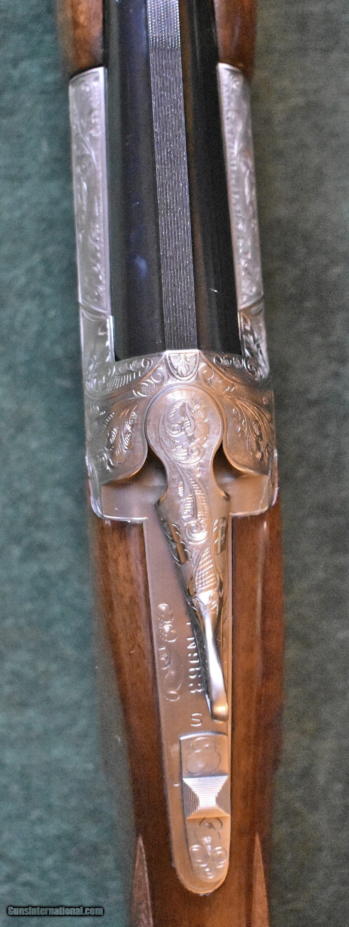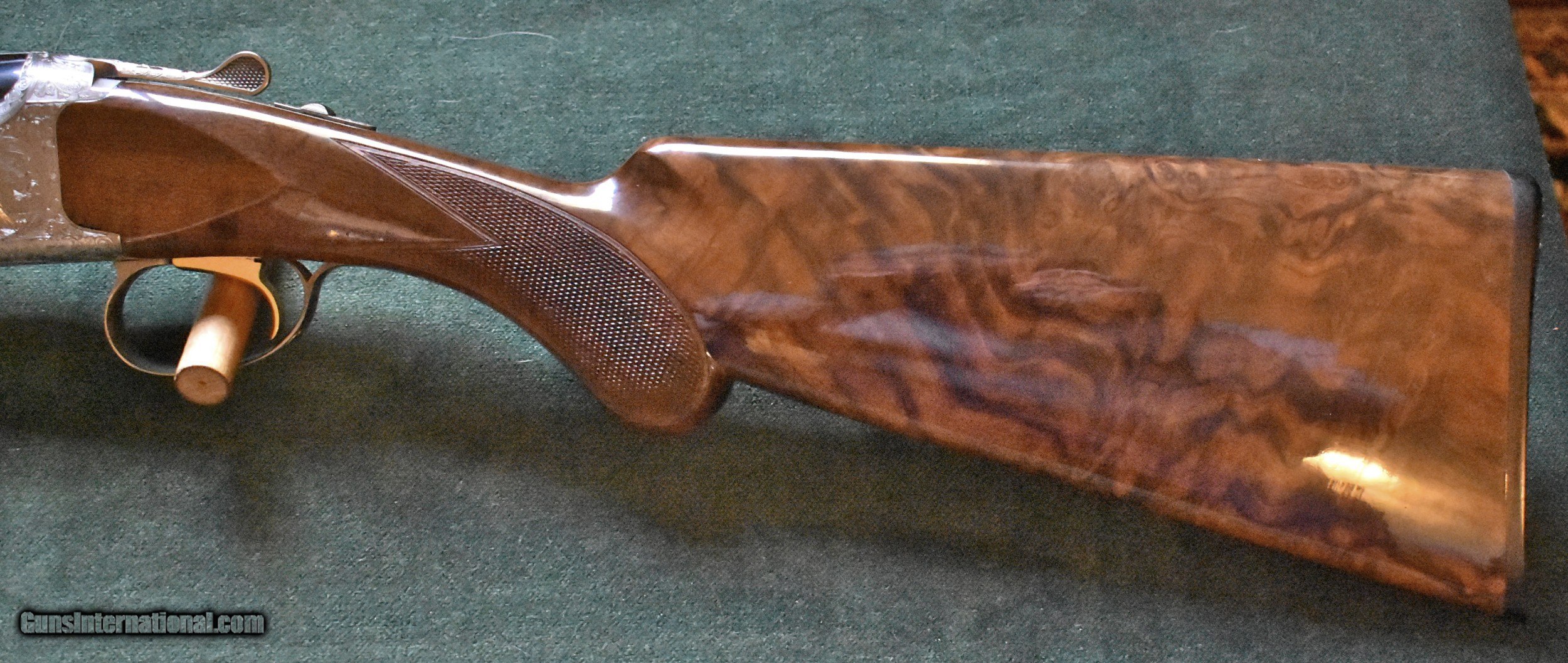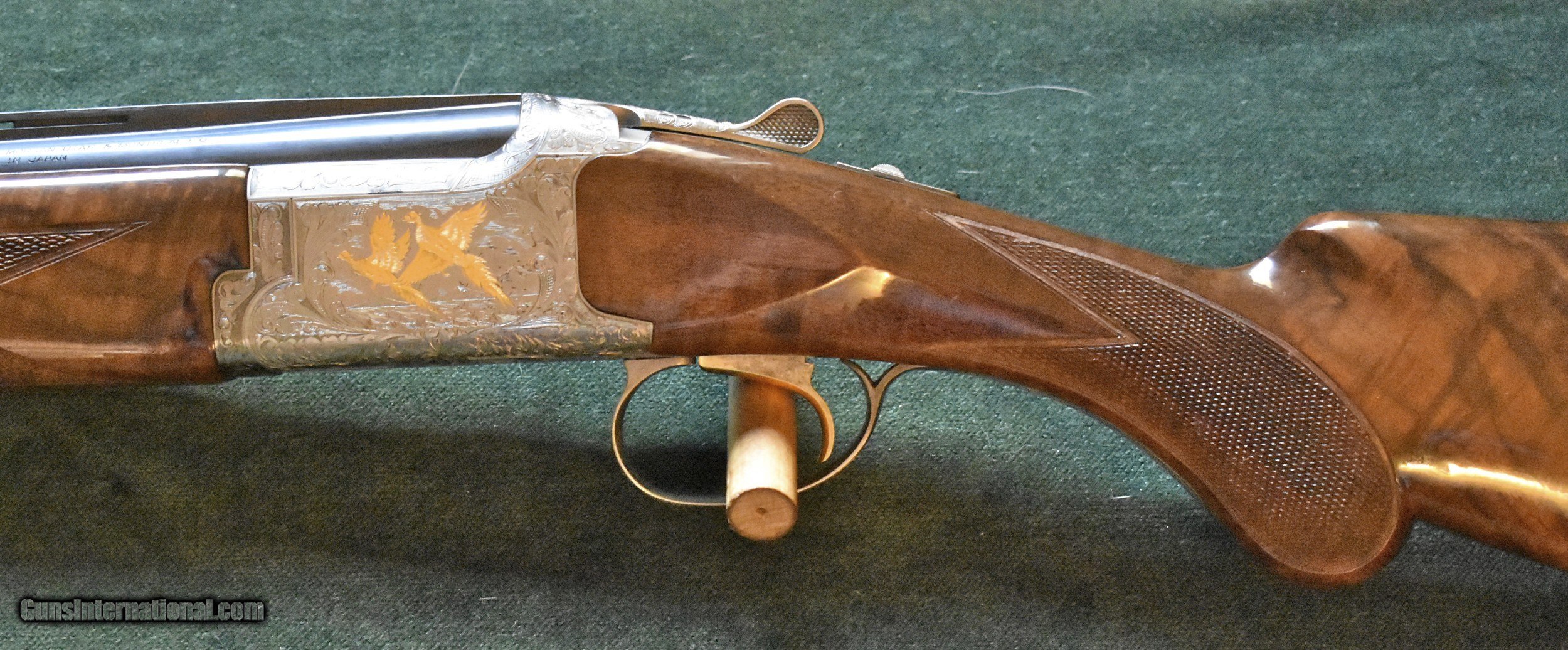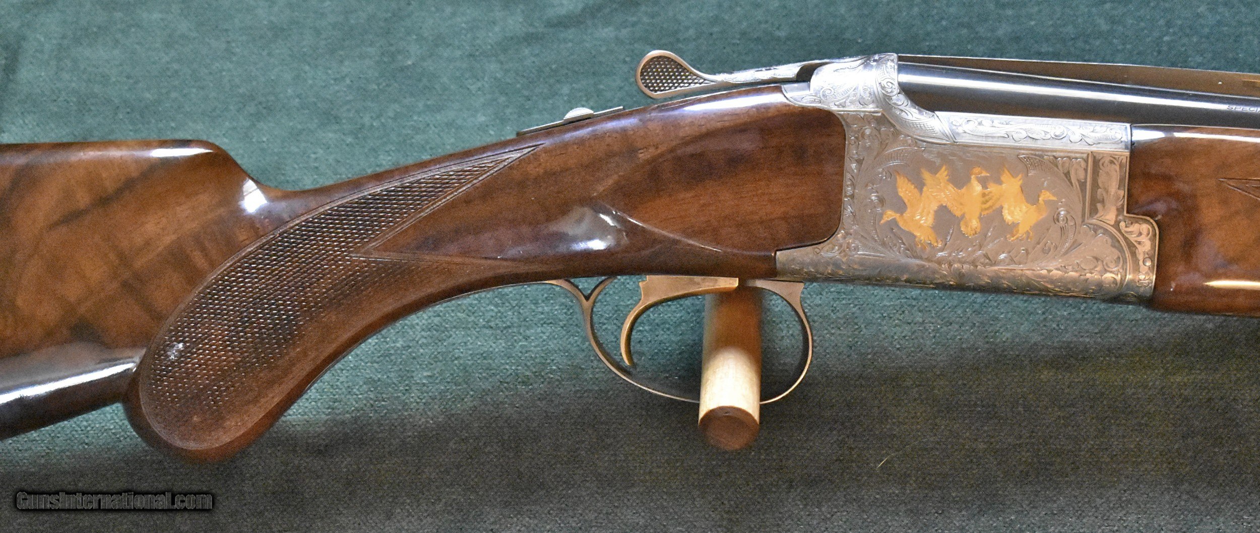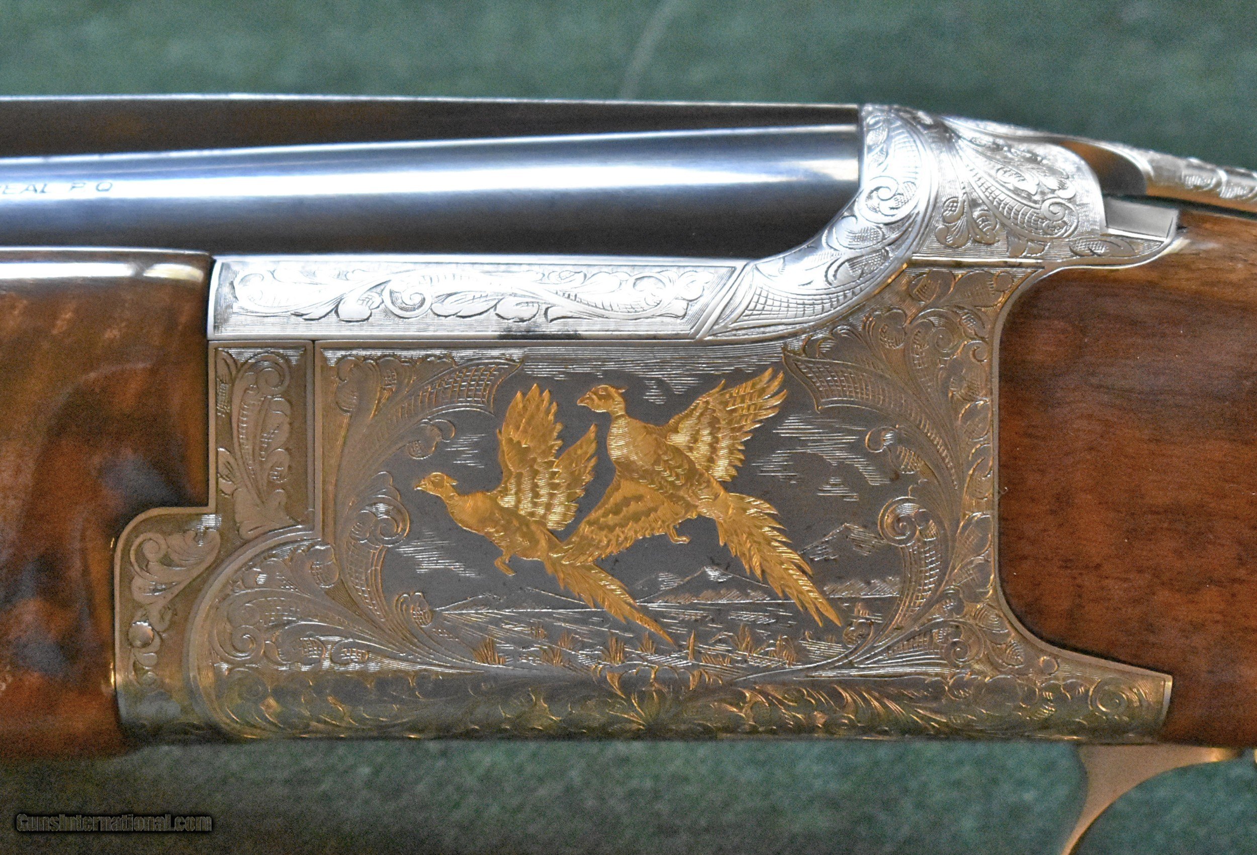 Description: Browning 20 gauge grade VI Lightening game gun. Built in 1989,this gun is in outstanding original condition. It retains 100% of the original metal finish and 99% of the original wood finish. The gun has 26" vent rib barrels with invector chokes. The stock and forend are very highly figured walnut and have only a few very small handling marks that keep it from being 100%. The coin finished receiver is fully engraved with deep cut scroll and gold game scenes.The gun has been fired less than 100 times since it was purchased new. The weight is 6-4 and the stock dimensions are 141/8"LOP,11/2" at comb,and 21/2" at heel. The gun is cased in a Browning luggage case with the manual and 5 invector chokes. A great little upland bird gun. SOLD Shotgun Gauge: 20 Gauge Manufacturer: Browning (Japan) Model: Citori Grade VI Serial Number: 24545PN963 Barrel Length: 26 Chambers: 23/4" & 3 Ejectors: yes Condition: mint Metal Condition: mint Wood Condition: mint Bore Condition: mint Barrel Type: Browning Special Steel Action: over under Triggers: single selective Stock Dimensions: 141/8"x11/2"x21/2 Butt Pad: factory buttplate Weight: 6-4 Manufacture Date: 1989 Chokes: invector chokes Case: factory case |