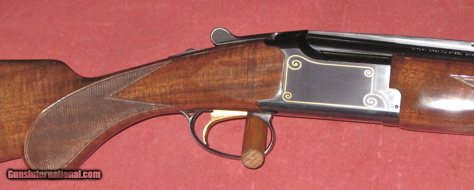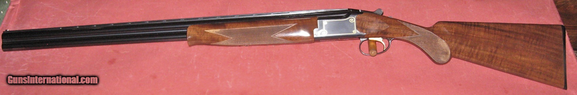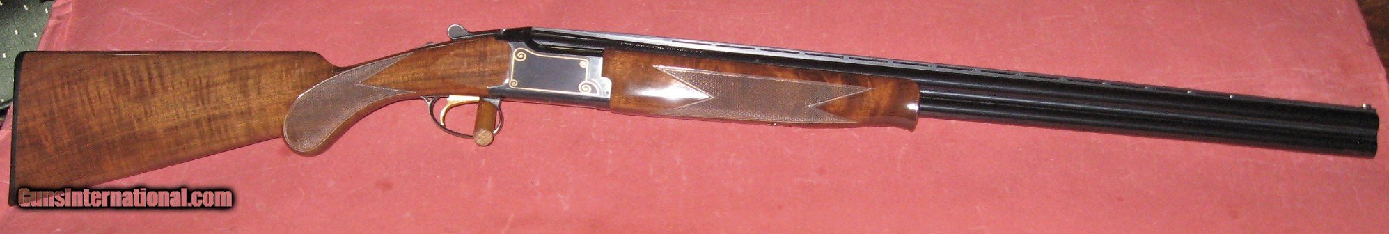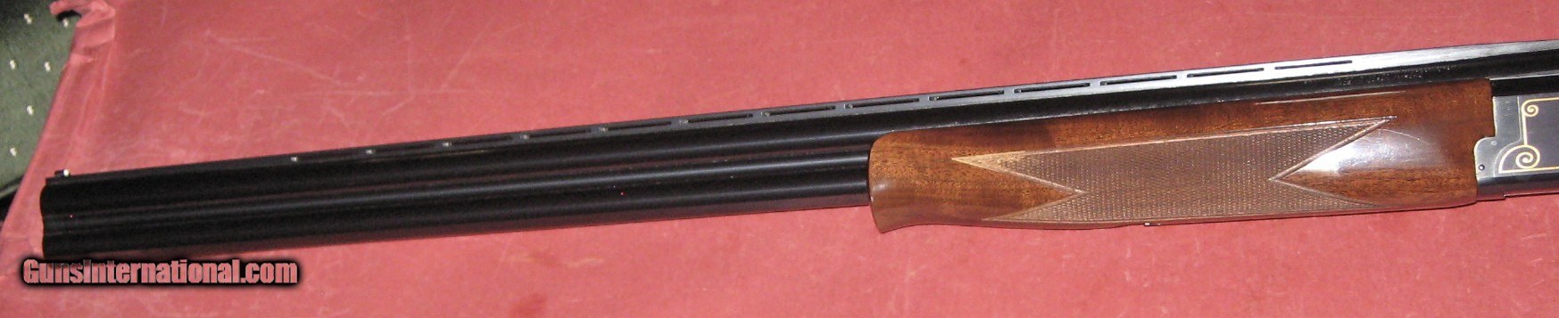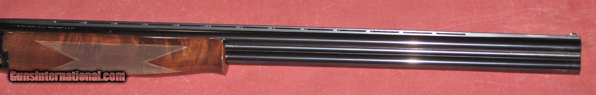 Description: An unusual Browning 20 gauge Super Lightening.Built for only two years,the Super Lightening features the round frame and schabel forend of the superlite and the round knob stock of the Lightening grade guns.This one has 28" vent rib barrels with invector plus chokes.The gun is in as new condition retaining 100% of the original blue and wood finish.This gun has been fired less than 25 times so it is essentially a new gun.It was built in 2005 and comes in a correct period Browning luggage case.This would make a great all around gun for hunting and clays shooting.Also an unusual gun that none of your shooting buddies are likely to have. SOLD Manufacturer: Browning (Japan) Model: Citori Super Lightening Serial Number: 25545MV131 Chambers: 23/4" and 3 Ejectors: yes Metal Condition: mint Wood Condition: mint Bore Condition: mint Action: over/under Stock Dimensions: 141/8"x11/2"x21/2 Butt Pad: factory buttplate Rib: ventilated Weight: 6-3 Manufacture Date: 2005 Chokes: invector chokes Case: Browning luggage |