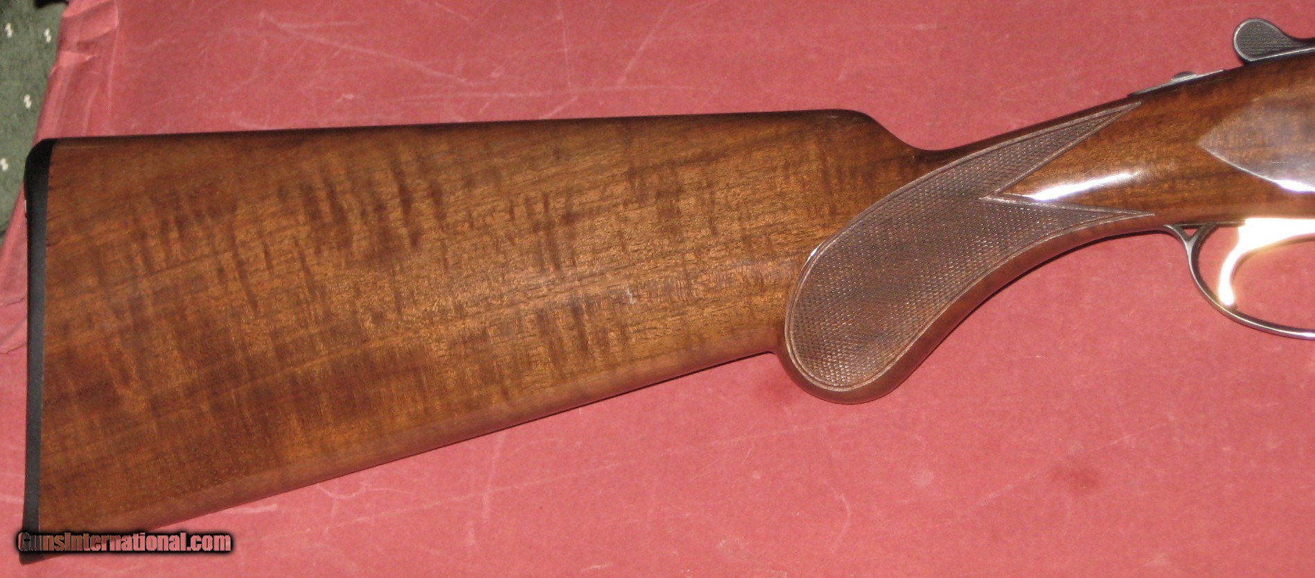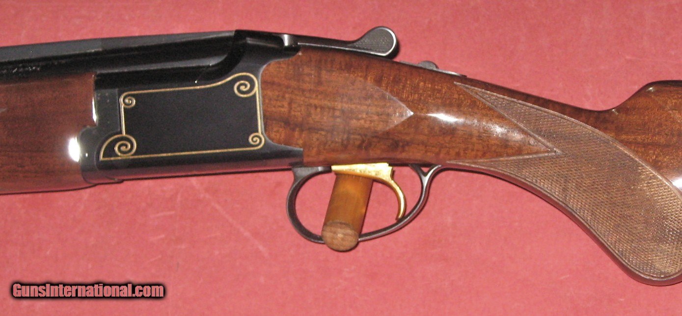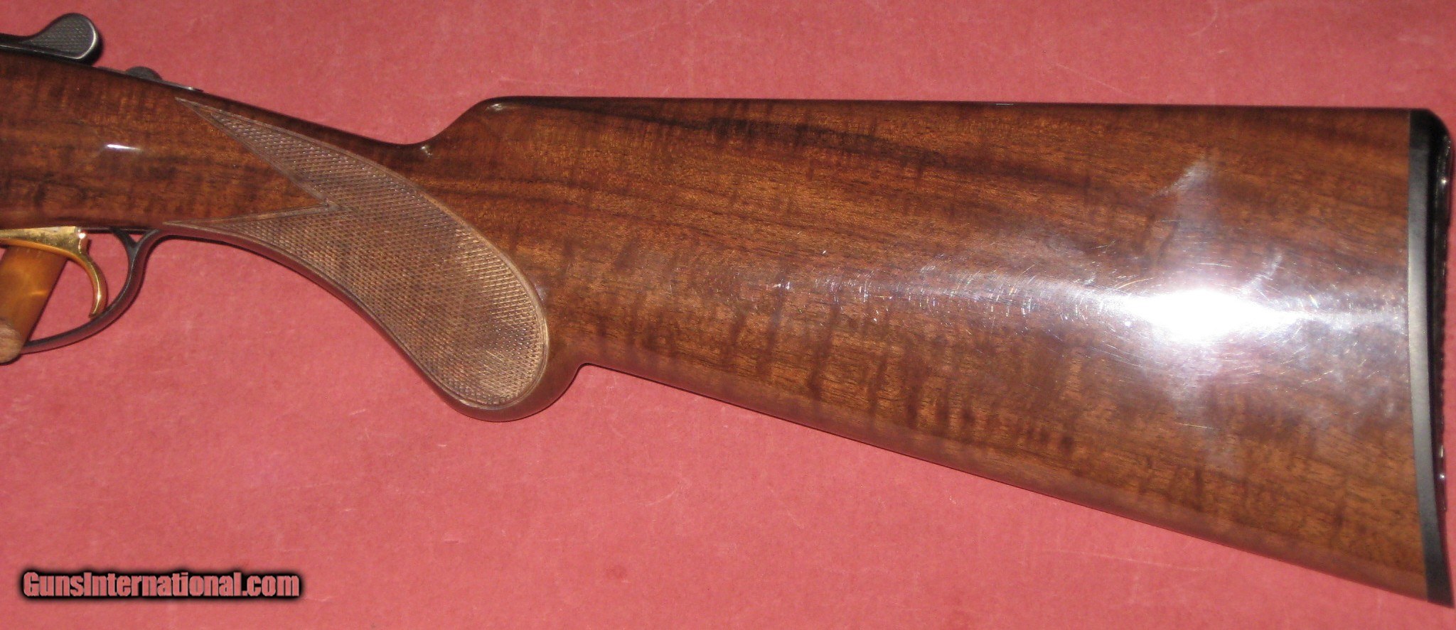 Description: An unusual Browning 20 gauge Super Lightening.Built for only two years,the Super Lightening features the round frame and schabel forend of the superlite and the round knob stock of the Lightening grade guns.This one has 28" vent rib barrels with invector plus chokes.The gun is in as new condition retaining 100% of the original blue and wood finish.This gun has been fired less than 25 times so it is essentially a new gun.It was built in 2005 and comes in a correct period Browning luggage case.This would make a great all around gun for hunting and clays shooting.Also an unusual gun that none of your shooting buddies are likely to have. SOLD Manufacturer: Browning (Japan) Model: Citori Super Lightening Serial Number: 25545MV131 Chambers: 23/4" and 3 Ejectors: yes Metal Condition: mint Wood Condition: mint Bore Condition: mint Action: over/under Stock Dimensions: 141/8"x11/2"x21/2 Butt Pad: factory buttplate Rib: ventilated Weight: 6-3 Manufacture Date: 2005 Chokes: invector chokes Case: Browning luggage |