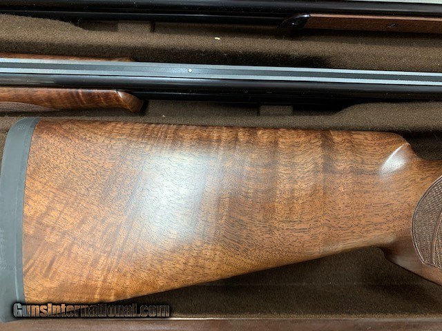 Description: Browning 625 Sporting Clays 4 Barrel Set 30" .410/28/20/12 Excellent- just about new SN- 01116ZM131 30" bbls all gauges 2 3/4" chambers for 28/20/12 3" chambers for .410 Ejectors Manual safety 8 lbs w/12g bbls Comb 1 5/8" Heel 2 3/8" LOP 15" Cast 0 Full set of chokes per bbl Single selective trigger Pristine Gun. Leather hard case. All original materials included. Great value.Sub-gauges appear unfired. Please call or email for additional information or photos. SOLD |