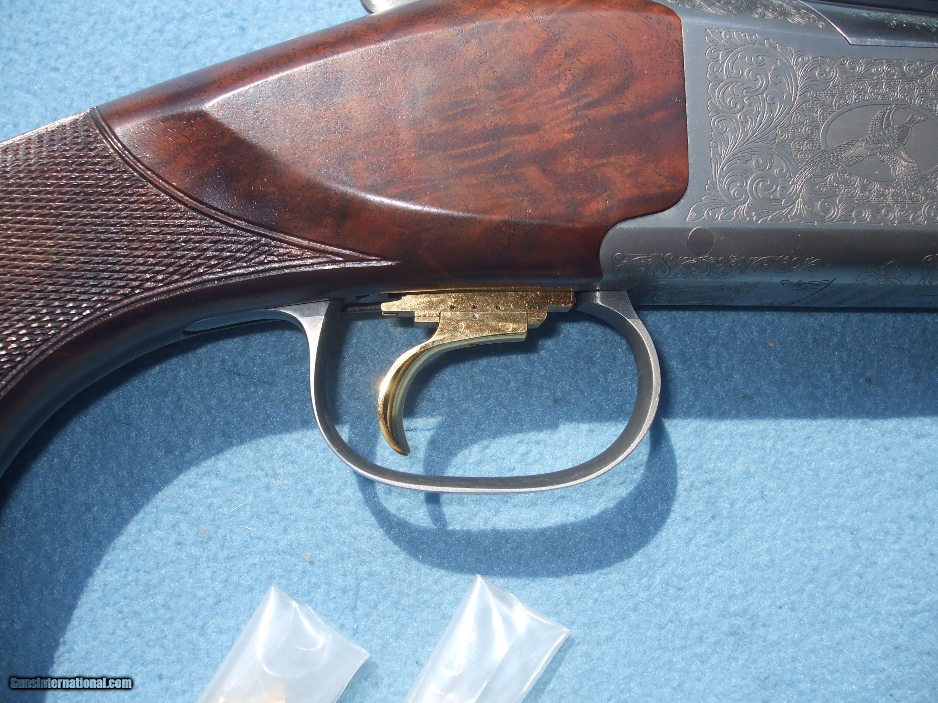 Description: Browning 725 American Sporter 12ga custom order 12ga 30" right hand. This is a custom order gun made in 2017. If you like the 725 sporting then you will love this custom version. The unique engraving pattern features full scroll pattern on the receiver with a pheasant on one side of the receiver, a duck on the other and a quail on the underside. Reiceiver is white nitride with slightly darker finish than standard gun to highlight engraving. Barrels are ported and supplied with 5 extended DS invector plius choke tubes (1-sk 1-ic 1-mod 1-imod 1-full).Other features include HiViz sight system, Browning 3 point trigger system and fire-lite mechanical trigger. This gun is very atrractive and a great value for the money. $100.00 rebate from Browning until 12/31/18 SOLD Manufacturer: Browning Model: 725 American sporter Serial Number: 13289zr131 Bore: .740 Chambers: 3 Ejectors: Yes Condition: New Metal Condition: New Wood Condition: New Bore Condition: New Barrel Type: o/u Action: Citori Triggers: fire-lite Gauge Info: 12 Stock Comb: 1 9/16 Stock Heel: 2 3/8 Stock Cast: RH Fore End: Schnabel Butt Pad: Inflex LOP: 14 3/4 Rib: 10mm-6mm Finish: satin Weight: 7lbs 10oz Sights: HiViz Manufacture Date: 2017 Chokes: DS-5 Engraving: amrcn sport Case: no |
